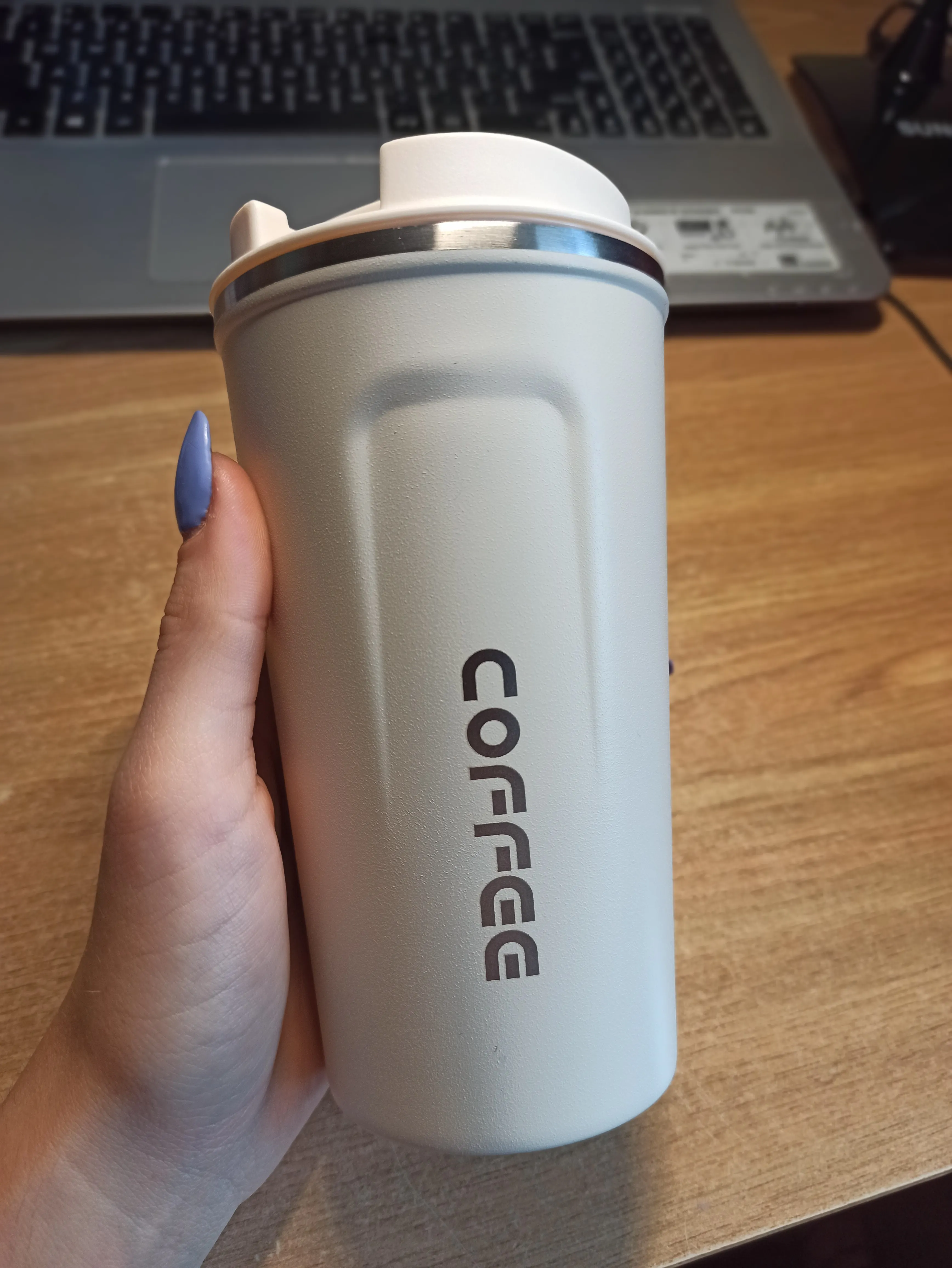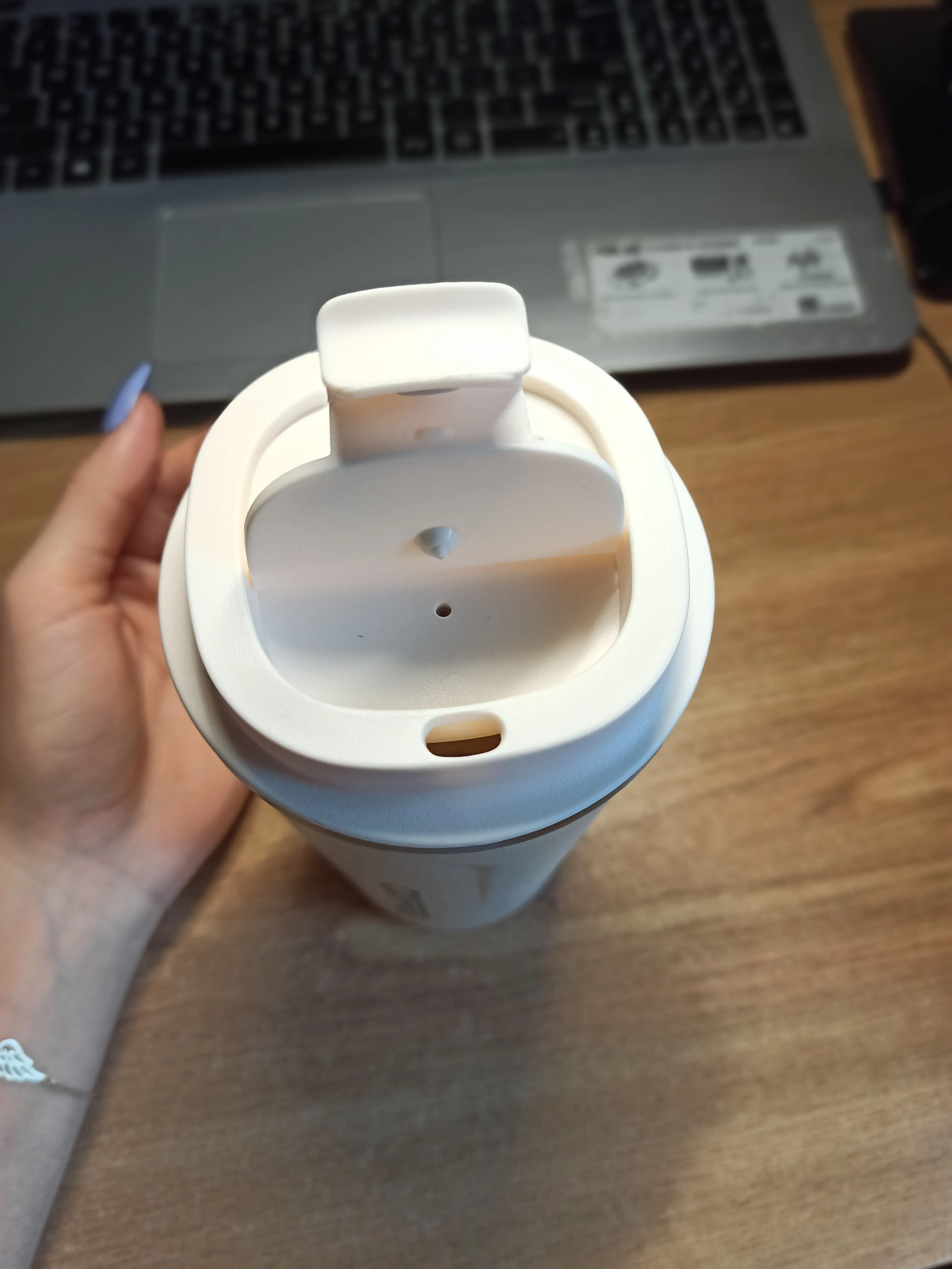 Мне очень нравится этот стакан, брала белый. Как уже ранее писали, держит температуру прилично. Не проливает. Стильный, на ощупь приятный. Рабочий объём 480 мл, даже для самого большого кофе с собой весьма ок. Рекомендую :)