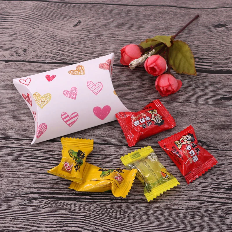 10 шт./лот, подарочная коробка в форме подушки, вечерние коробки для конфет, Подарочная коробка с цветными узорами 65x90x25mm