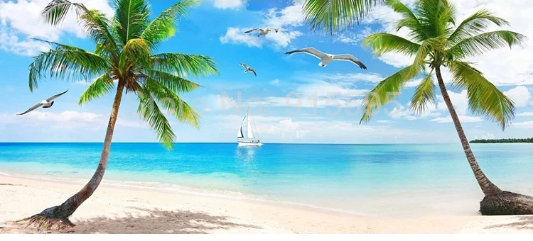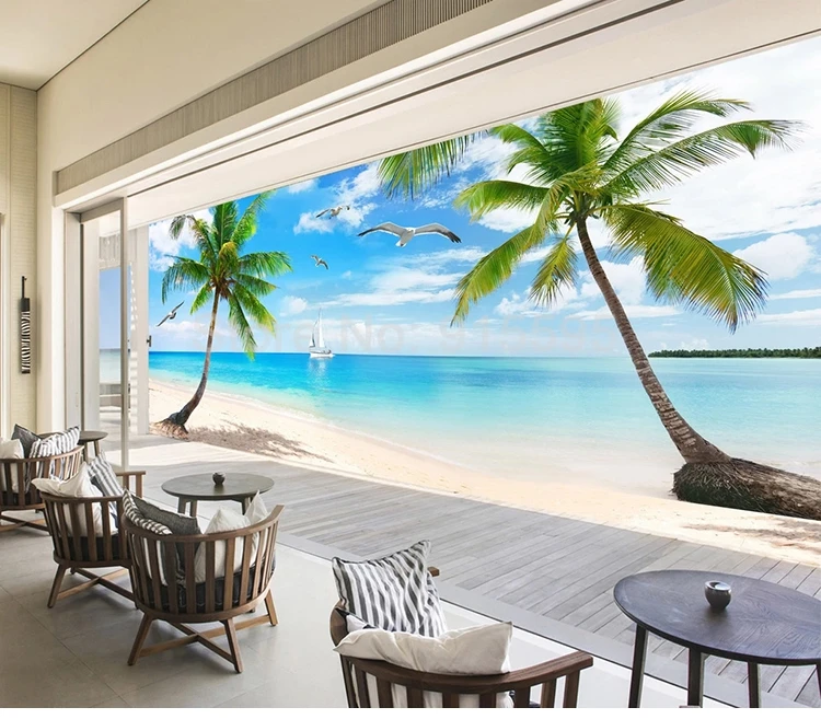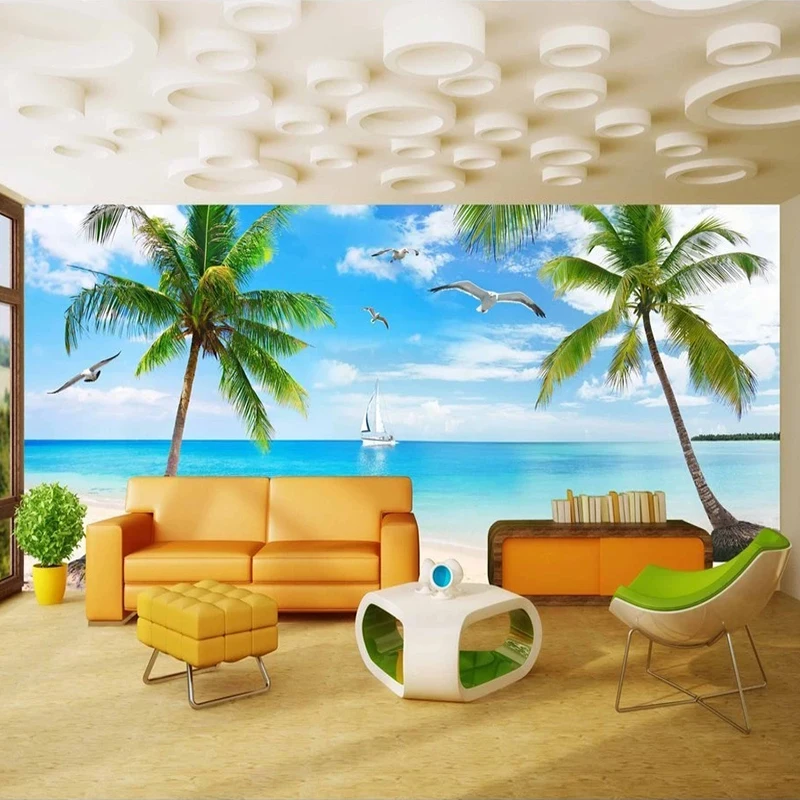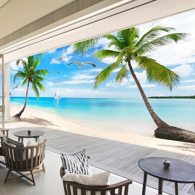 Пользовательские 3D фото обои морской берег Чайка кокосовое дерево пляжная настенная живопись гостиная спальня ресторан настенная бумага