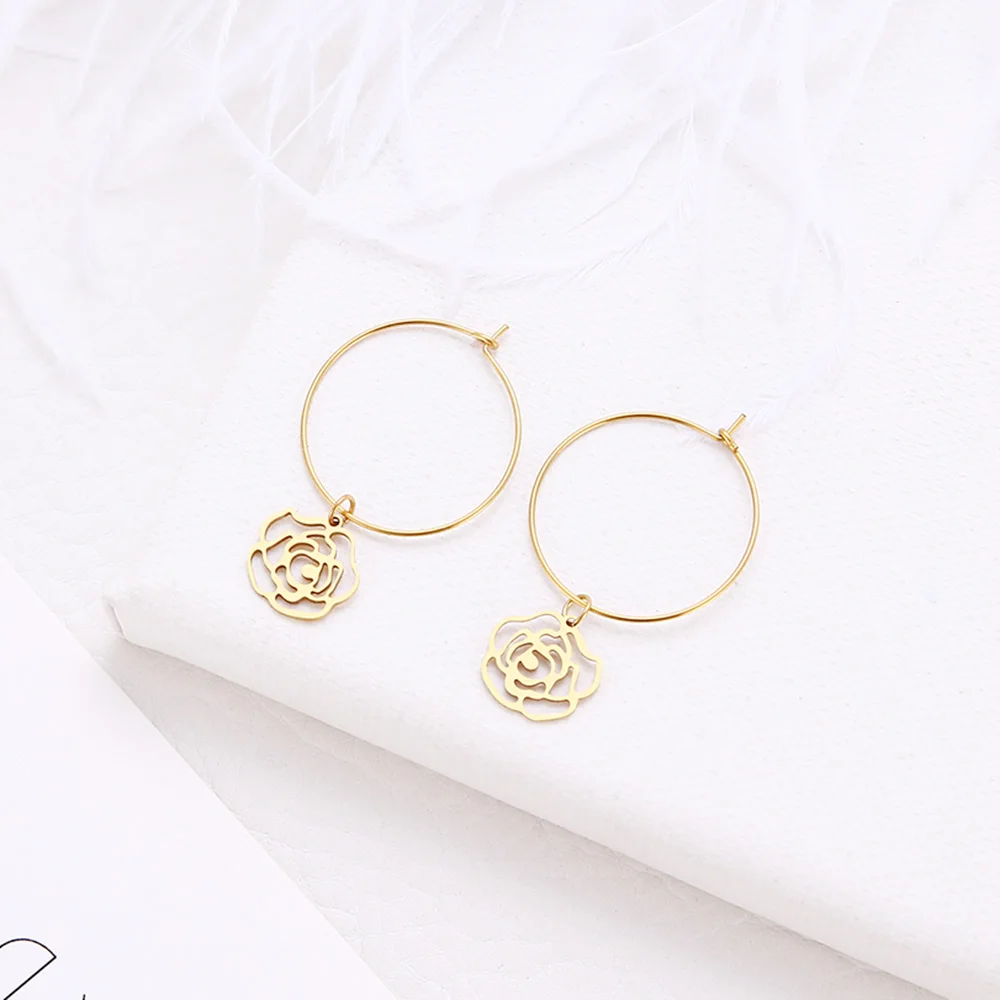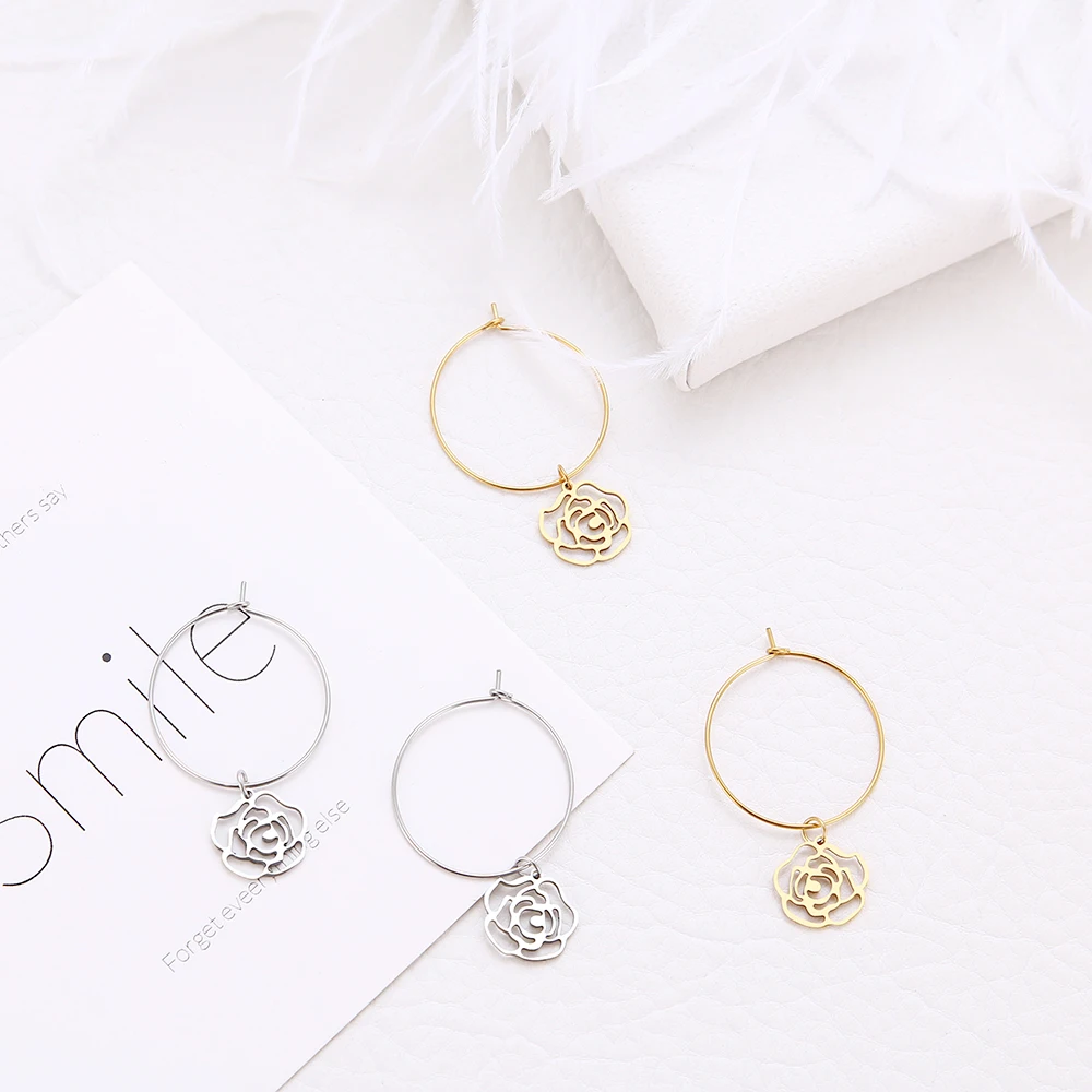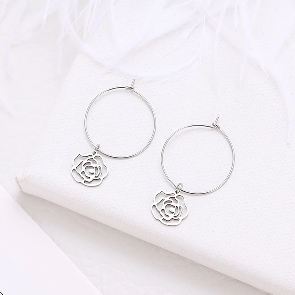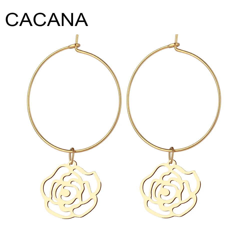Женские богемные серьги-подвески CACANA, простые серьги-подвески с большим цветком розы, элегантные серьги из нержавеющей стали K17