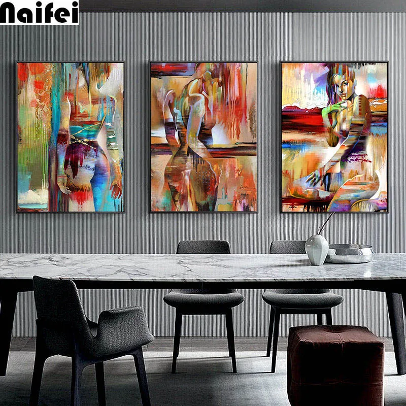 Скандинавская алмазная живопись мода сексуальная фигура картина искусство домашний Декор Гостиная Девушка Спальня абстрактное искусство Алмазная вышивка 3 шт.