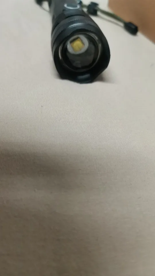 Фонарик, если вертикально поставить на ровную поверхность, головной частью вниз, стоит на стекле линзы, то есть стоит ему один раз упасть головной частью вниз и стекло разбито. Диод смещен в сторону, так, что светит он не так, как направляешь, а в сторону, приходится его корректировать, что не очень приятно и непривычно, на фото видно, что диод расположен не по центру.