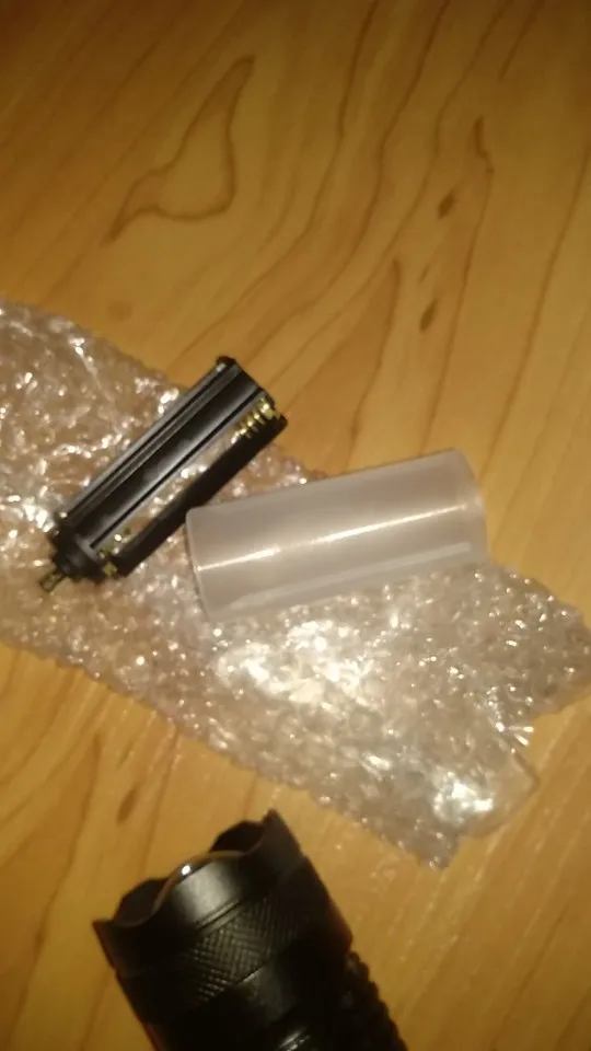 Пришла посылка быстро. Фонарик светит отлично так как хотел. Батарея была запакована в плёнке как на фото. Заряжана была полностью. Тяжёлый потому что с метала. Но он греется нам где показывает индикатор заряда. Буду пользоваться с удовольствием.