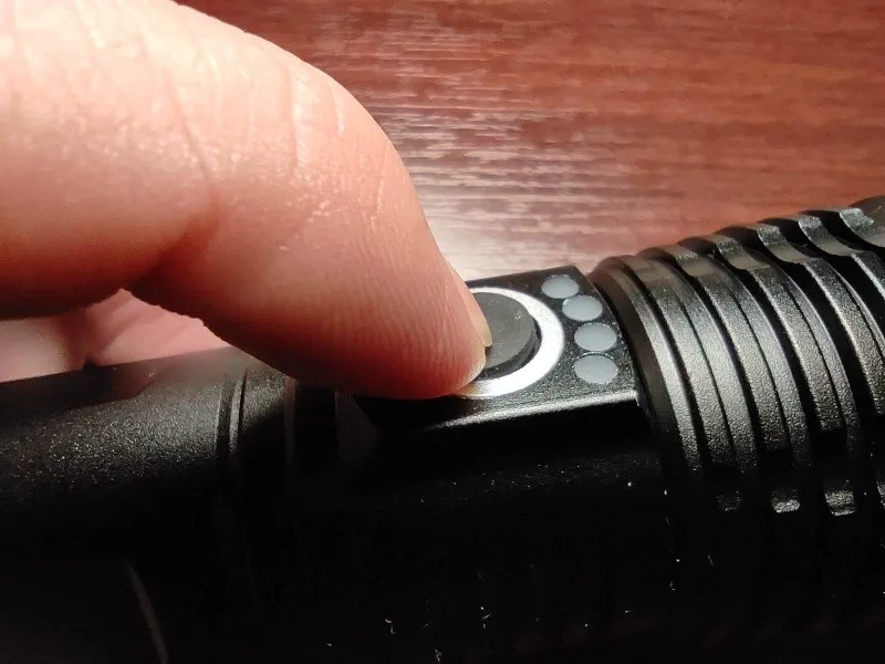 Отлично! Очень яркий свет. Имеет индикатор заряда батареи с 4 синими светодиодами и порт mirco usb для зарядки. Может использоваться с аккумуляторами 18650, 26650 или 3 AAA. Он имеет 5 режимов: яркий, средний, низкий, мигающий и SOS.