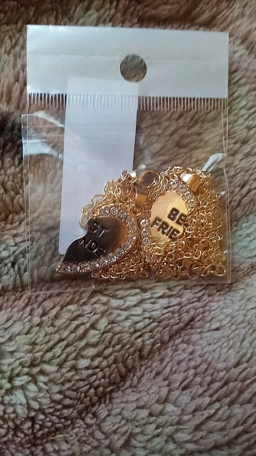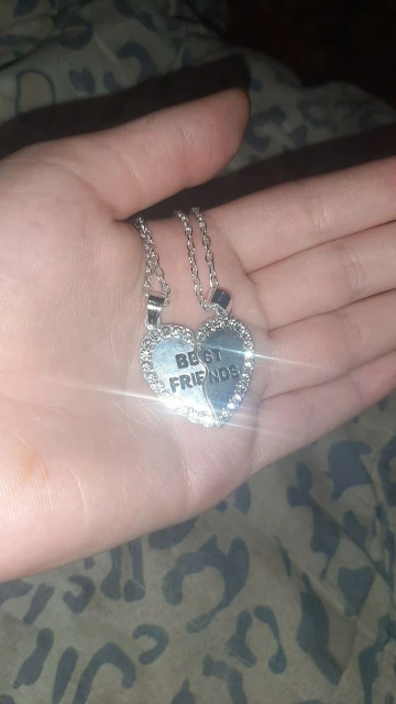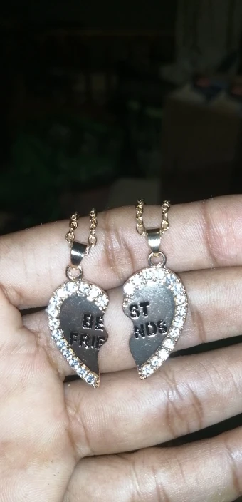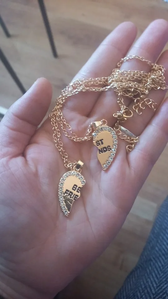 Мне действительно нравятся эти ожерелья, Они идеальны и удивительны для лучших друзей, и я доволен цветом. Я рекомендую это для тех, кто вам действительно нравится и очень близок. Я также думаю, что обслуживание было потрясающим, он не получил мой заказ неправильно один раз, и дайте мне знать, когда он был размещен