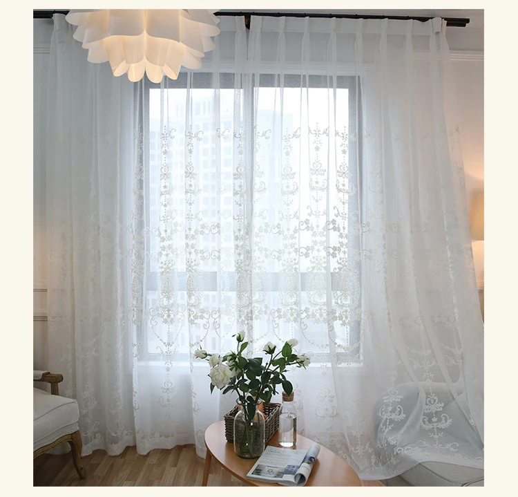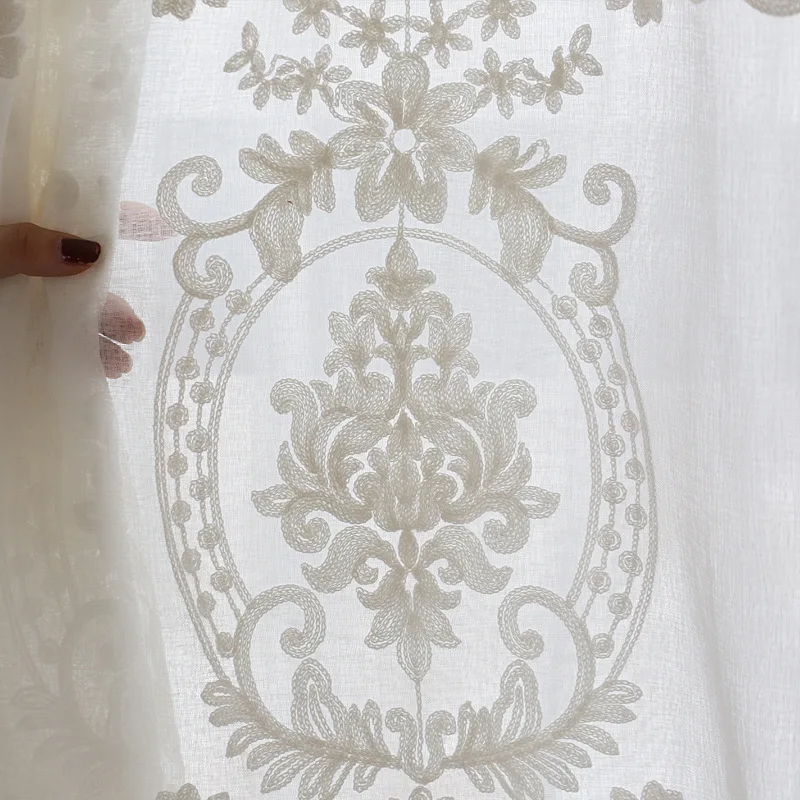Европейский льняной тюль для спальни, роскошная Геометрическая вышитая прозрачная занавеска s для гостиной, белые шторы ZH40Y