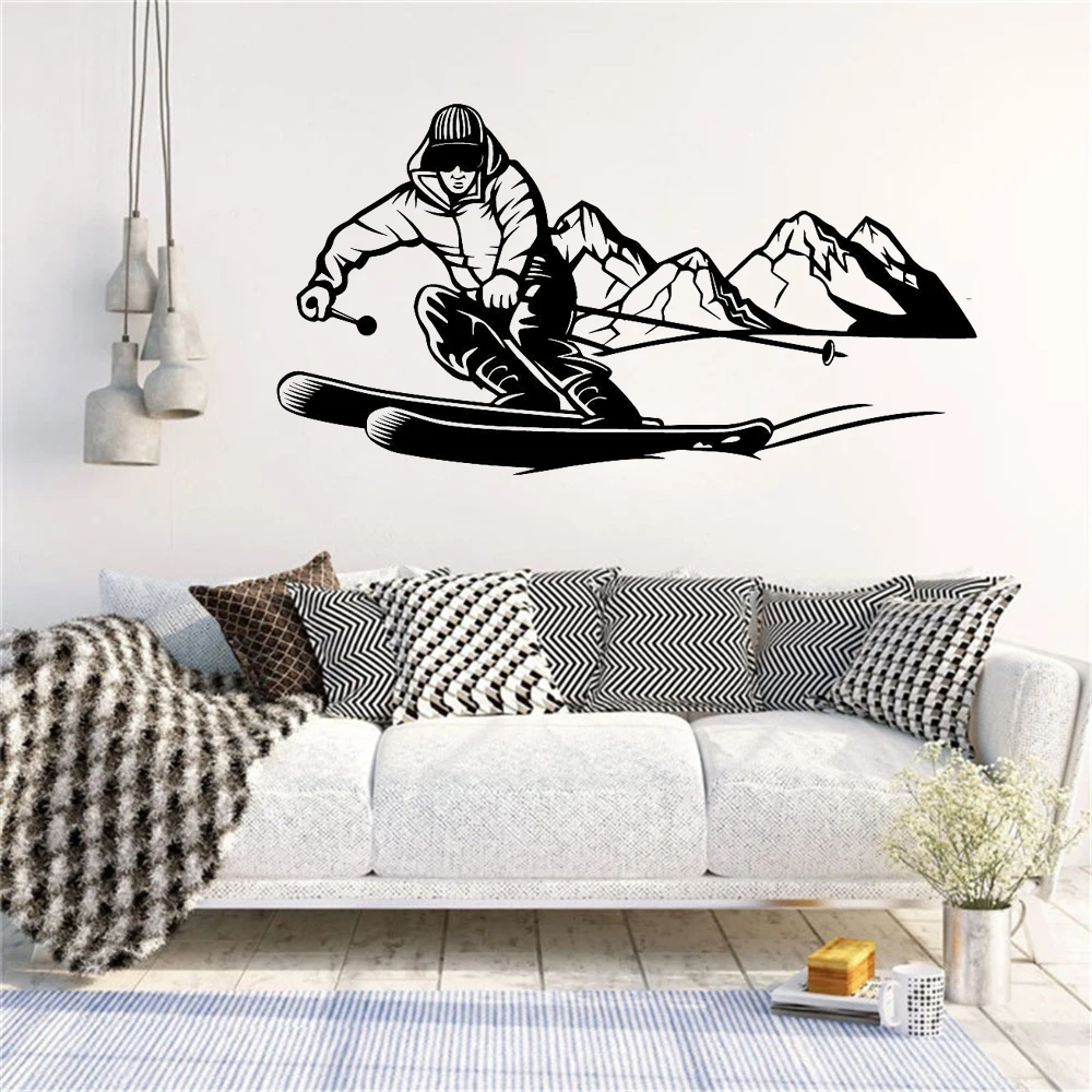 Виниловая наклейка на стену, Мужская Уличная наклейка для лыж, тренировок, Настенная Наклейка для спальни, гостиной, Настенный декор WL269