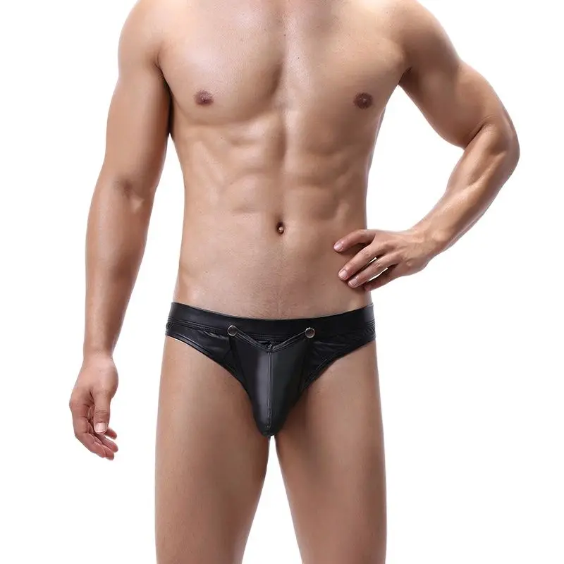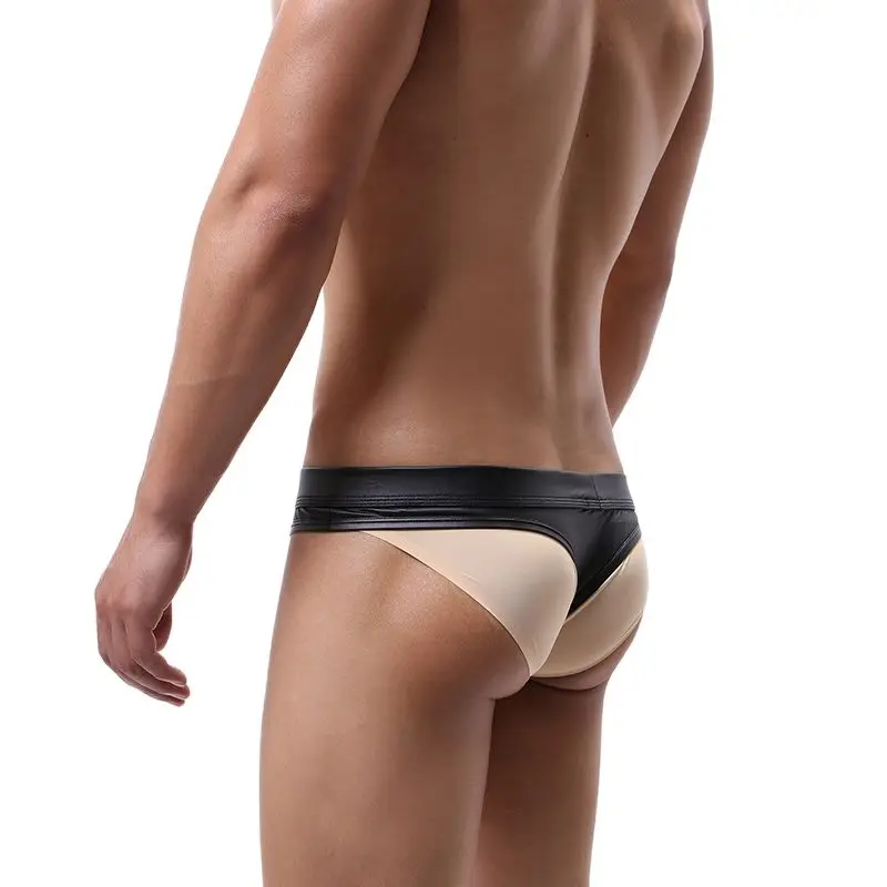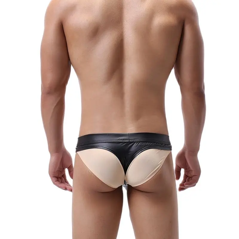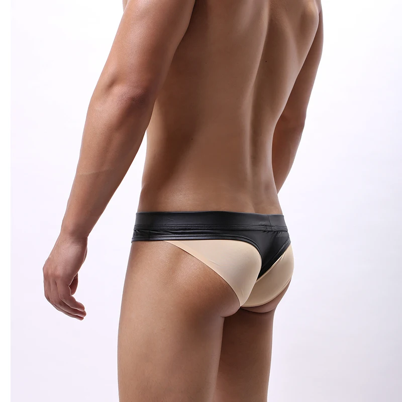 Нижнее белье с открытой передней частью для мужчин, сексуальные мужские стринги из искусственной кожи, мужские Трусы-стринги с карманом для пениса, мужские трусы