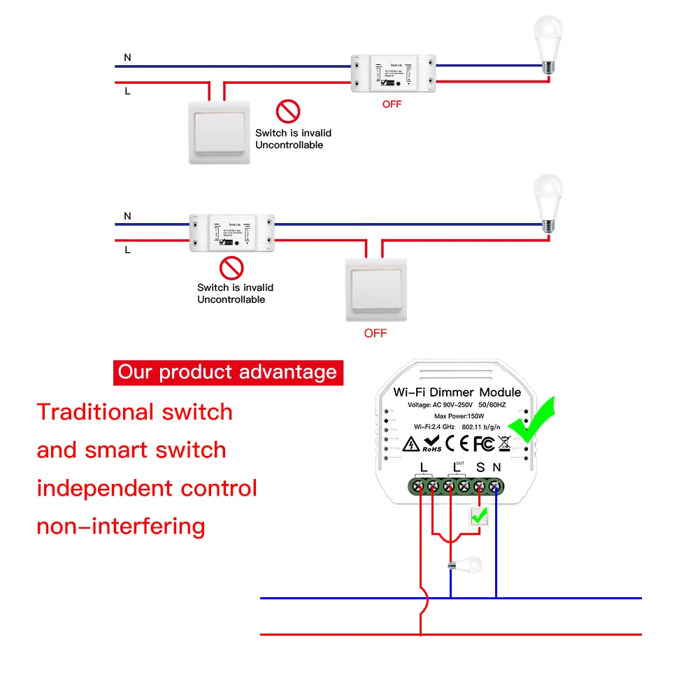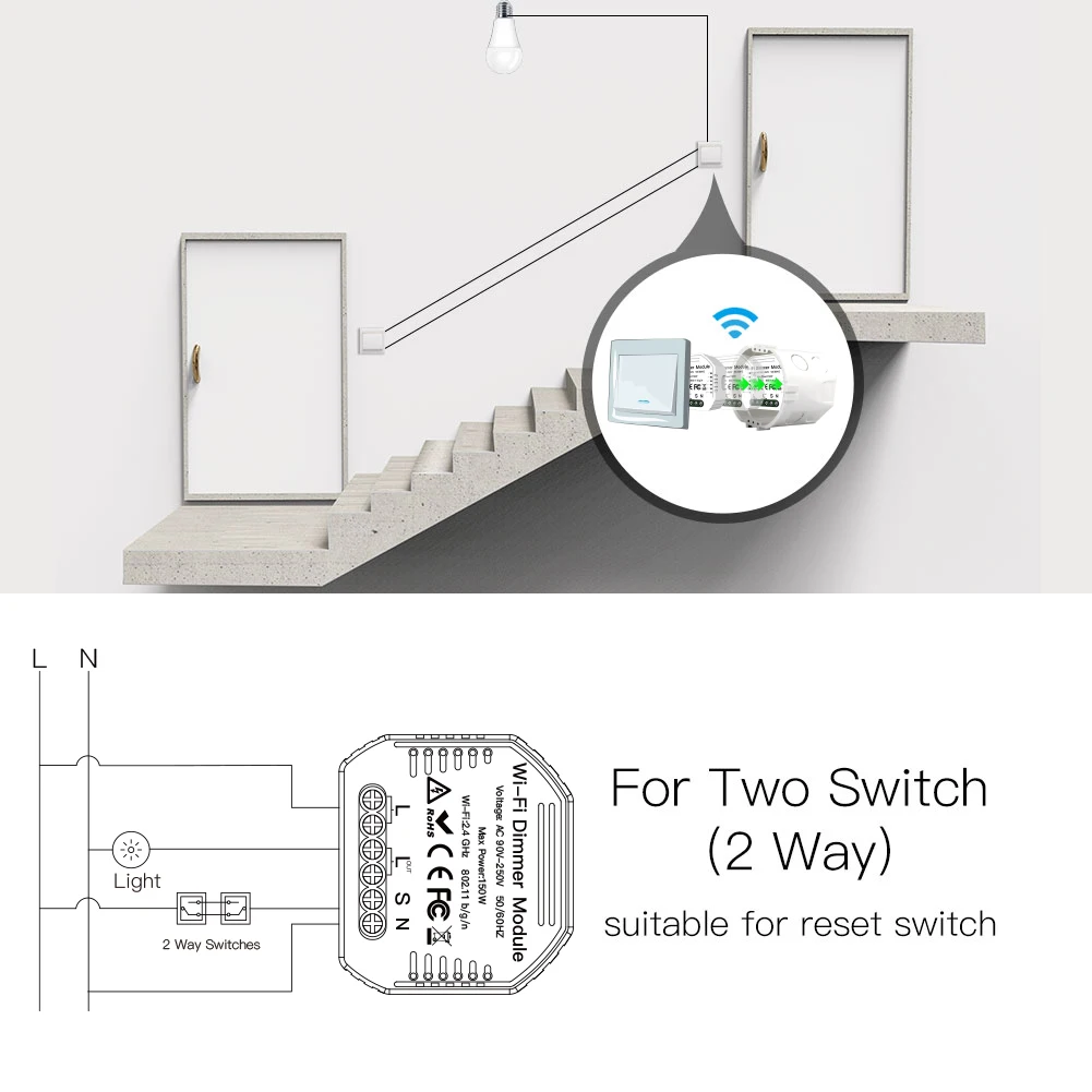 1. Легко заменить ваш традиционный переключатель света диммера, чтобы сделать его умным, также может сделать ваш существующий двухпозиционный переключатель умным, просто установите 1 Умный переключатель диммера diy,