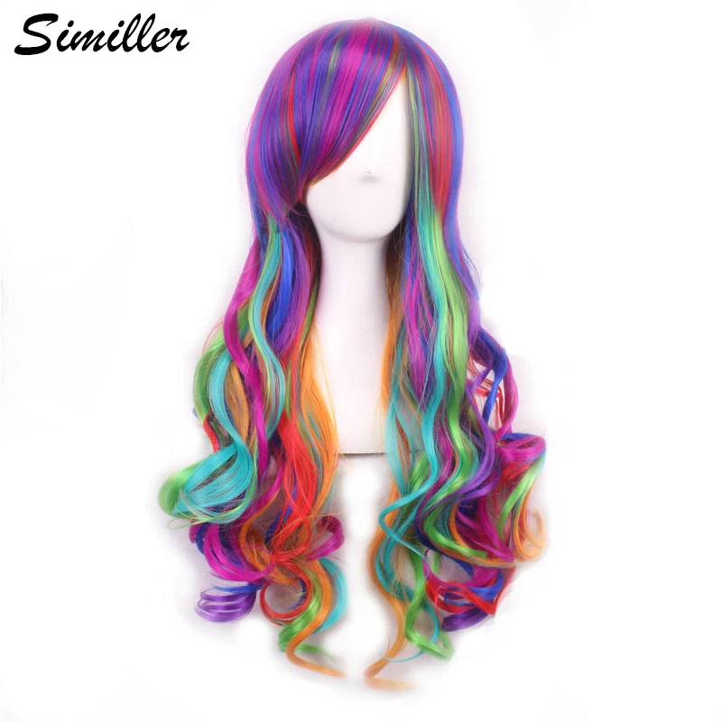 Similler Искусственные парики для косплея из аниме для женщин, высокотемпературные волоконные длинные вьющиеся искусственные волосы с челкой