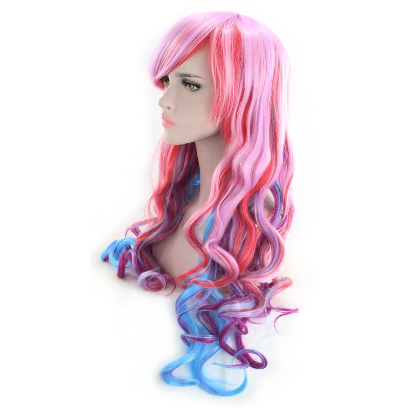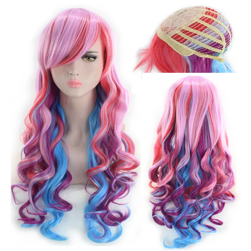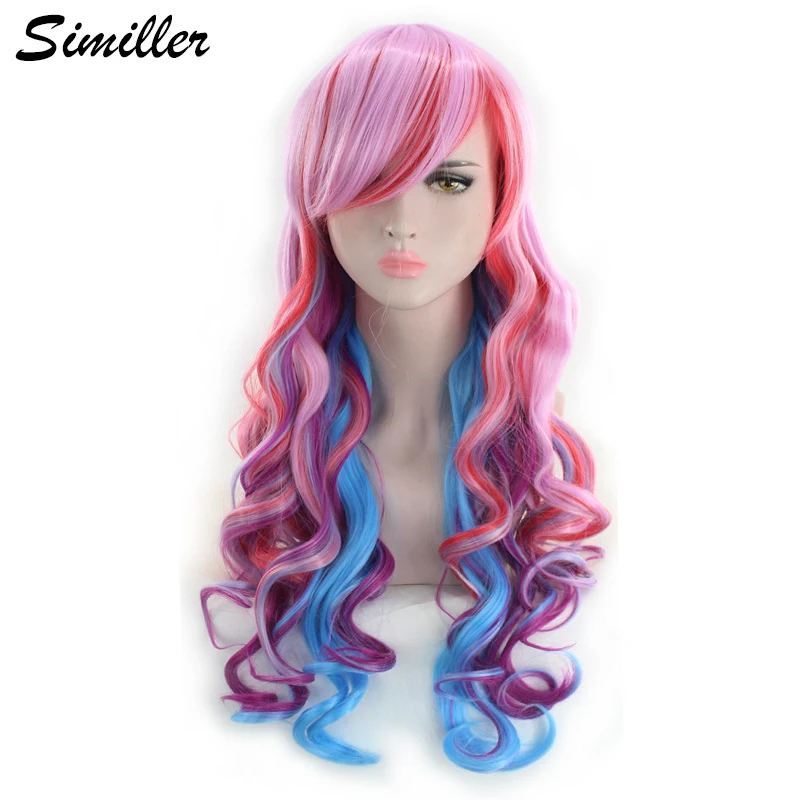 Similler аниме косплей синтетические парики длинные вьющиеся волосы многоцветный Смешанные цвета розовый фиолетовый парик Голубой с эффектом омбре для женщин