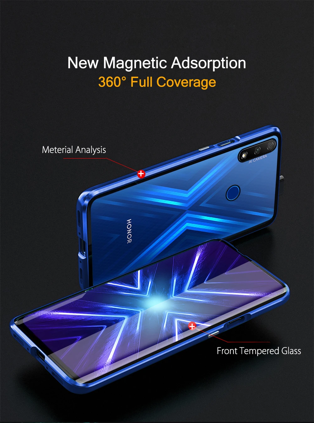 Двусторонний магнитный чехол для Honor 9X Premium, из закаленного с...