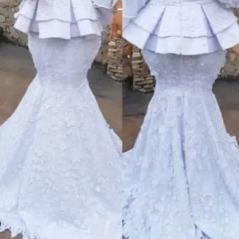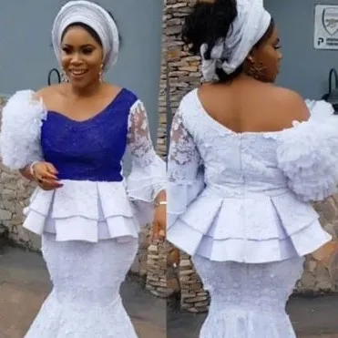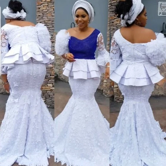 Aso Ebi платье для выпускного вечера, белое и синее платье-Русалка с оборками и аппликацией на одно плечо, официальное длинное платье
