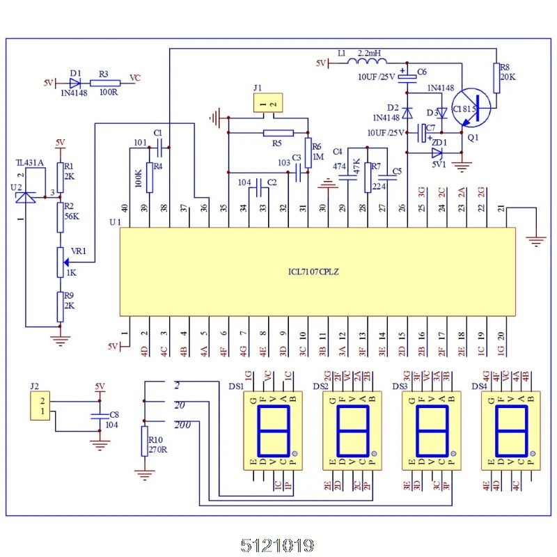 100% новый и высококачественныйПринцип цепи:Амперметр AMM-TE в основном состоит из ICL7107, цепи питания, источника опорного напряжения, входной цепи и схемы отображения.1.ICL7107-это выходной интегральный чип преобразования типа a/D BCD, внутренний включает в себя; Линейное усиление, аналоговый переключатель, колебания, вождение дисплея и т. д.2. Цепь питания делится на положительную и отрицательную. Положительная мощность вводится фильтрацией J2, C8. Отрицательный результат состоит из R8, Q1, L1, C6, C7, D2, D3 и ZD1, которые генерируют напряжение-5 В, вводится на чип 26-го контакта.3. Источник опорного напряжения состоит из R1, R2, VR1, R9, U2. 36-контактный-это контактный разъем опорного напряжения. Отрегулируйте потенциометр VR1, чтобы 36-контактное напряжение было 100 мВ.4. Входная схема состоит из J1, R5, R6 и C3. Когда ток измеряемой цепи проходит через R5, он будет генерировать напряжение на R5. Это напряжение будет введено на чип 31-pin через ограничение тока R6 и обрабатываться, C3-конденсатор фильтрации входного напряжения.5. Схема отображения состоит из DS1-DS4, D1, D4, 4 цифровых трубок, которые можно управлять напрямую микросхемой. R10-ограничивающее сопротивление току DS1-DS3 десятичных точек на цифровых трубках.