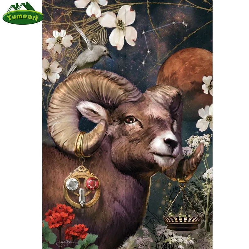 YUMEART алмазная живопись, Цветочная овечка, животное, алмазная живопись, вышивка крестиком, птицы и цветы, вышивка, домашняя декоративная стена