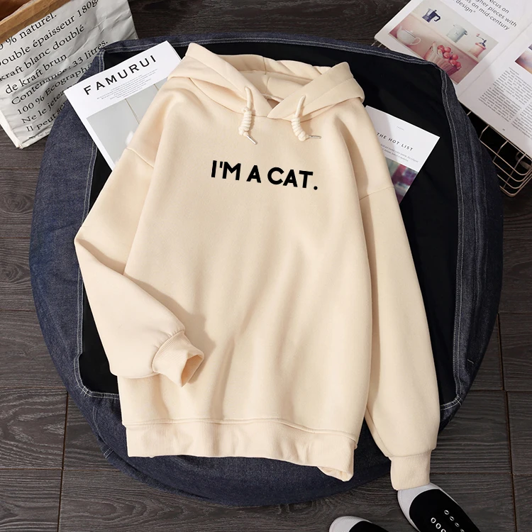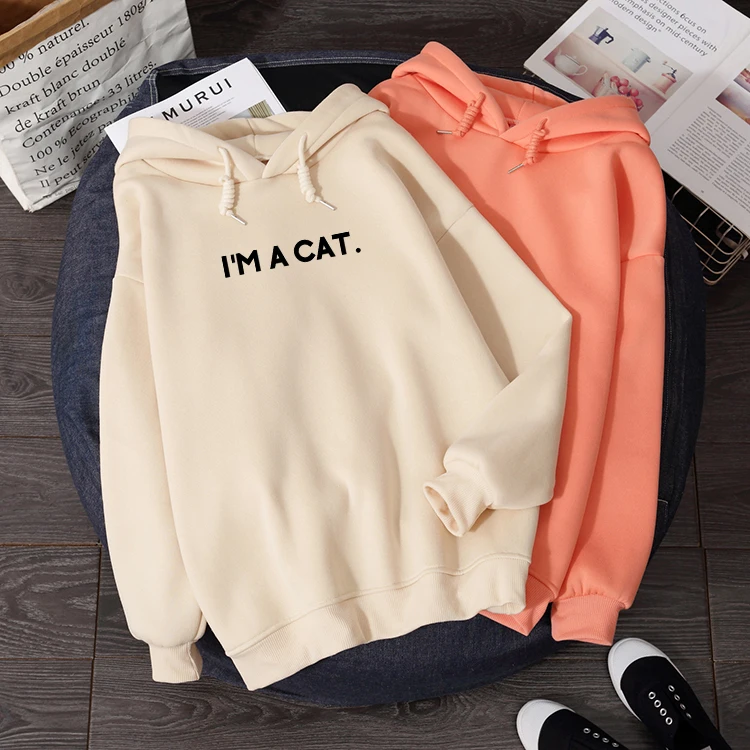 Осенне-зимние женские толстовки с длинным рукавом и надписью I'm A Cat