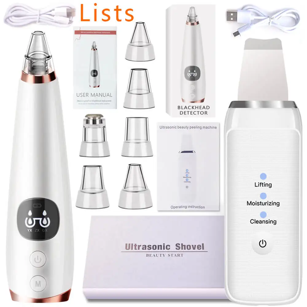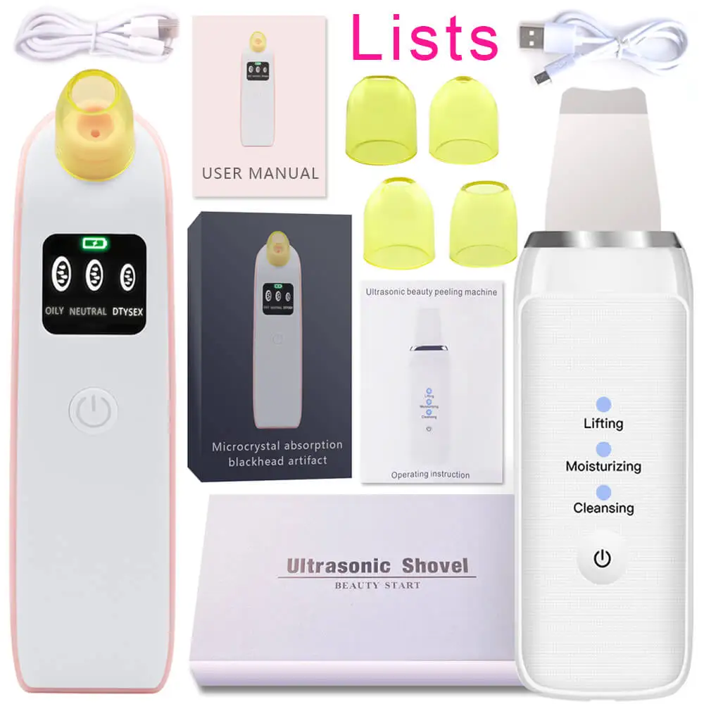 Ультразвуковой скраббер для кожи лица, лопатка для морщин, пылесос для удаления черных точек и акне, набор для очистки пор, экстрактор для подтяжки носа