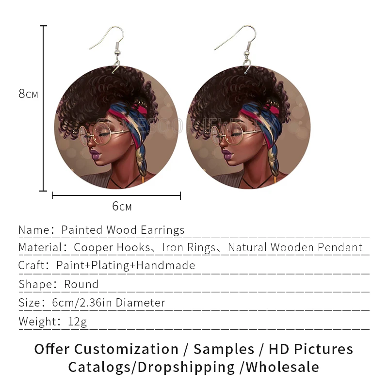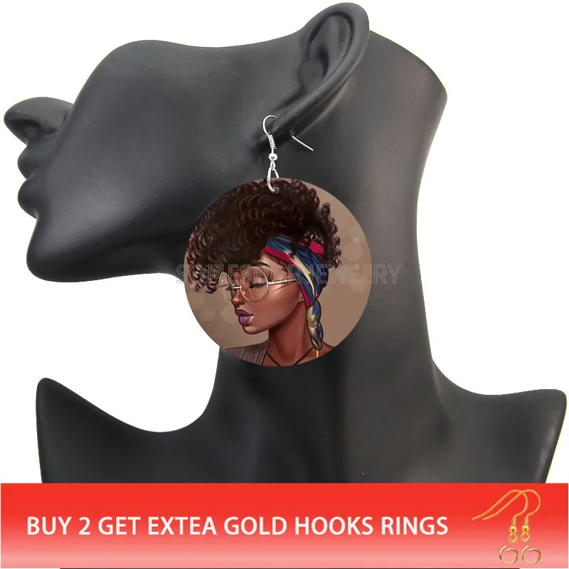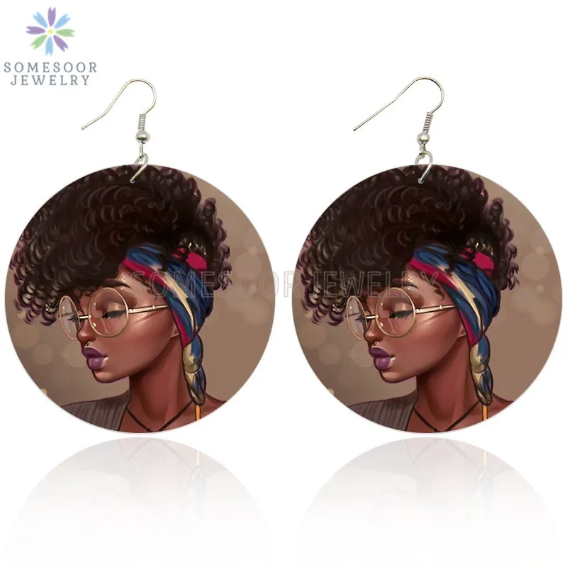 SOMESOOR меланин поппин королева вьющиеся деревянные висячие серьги...