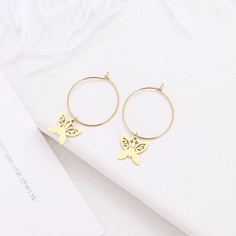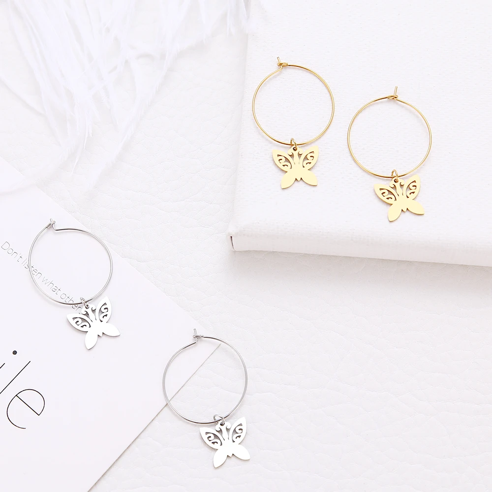 Женские серьги DOTIFI, Классические круглые серьги-бабочки, милые серьги из нержавеющей стали с животными, ювелирные изделия для помолвки, X57