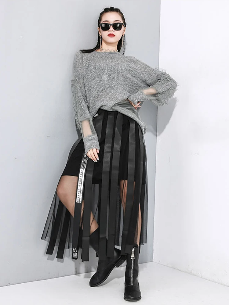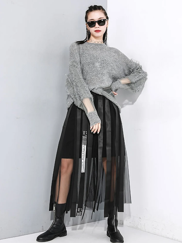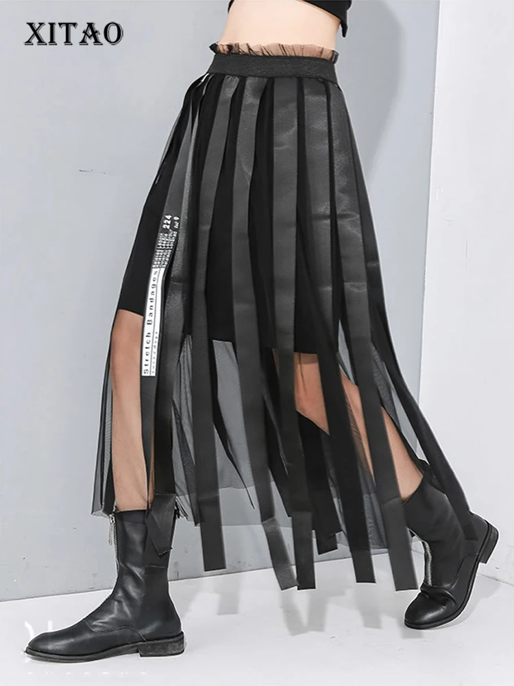 Женская Асимметричная юбка XITAO, сетчатая Комбинированная юбка с поясом на резинке, весна 2020, WLD1084