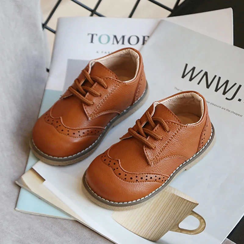 Броги SKOEX детские кожаные, на шнуровке, для мальчиков и девочек, туфли оксфорды повседневные, Нескользящие, мягкие
