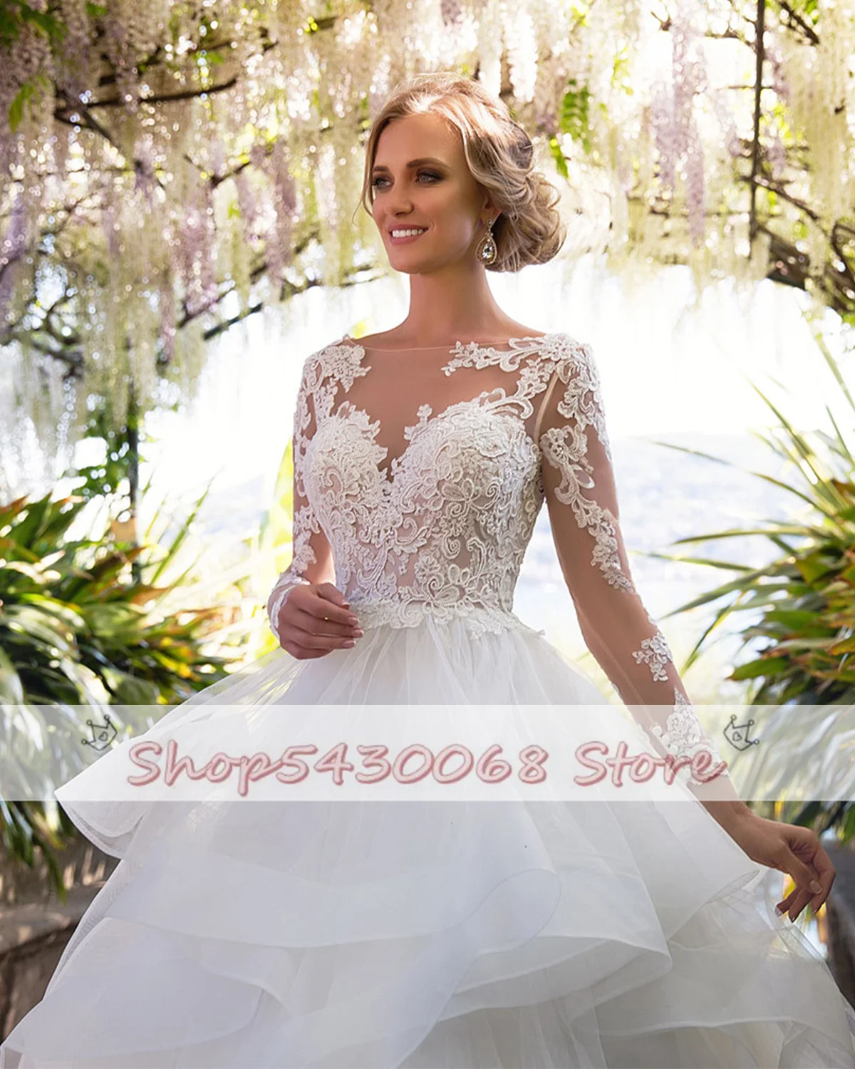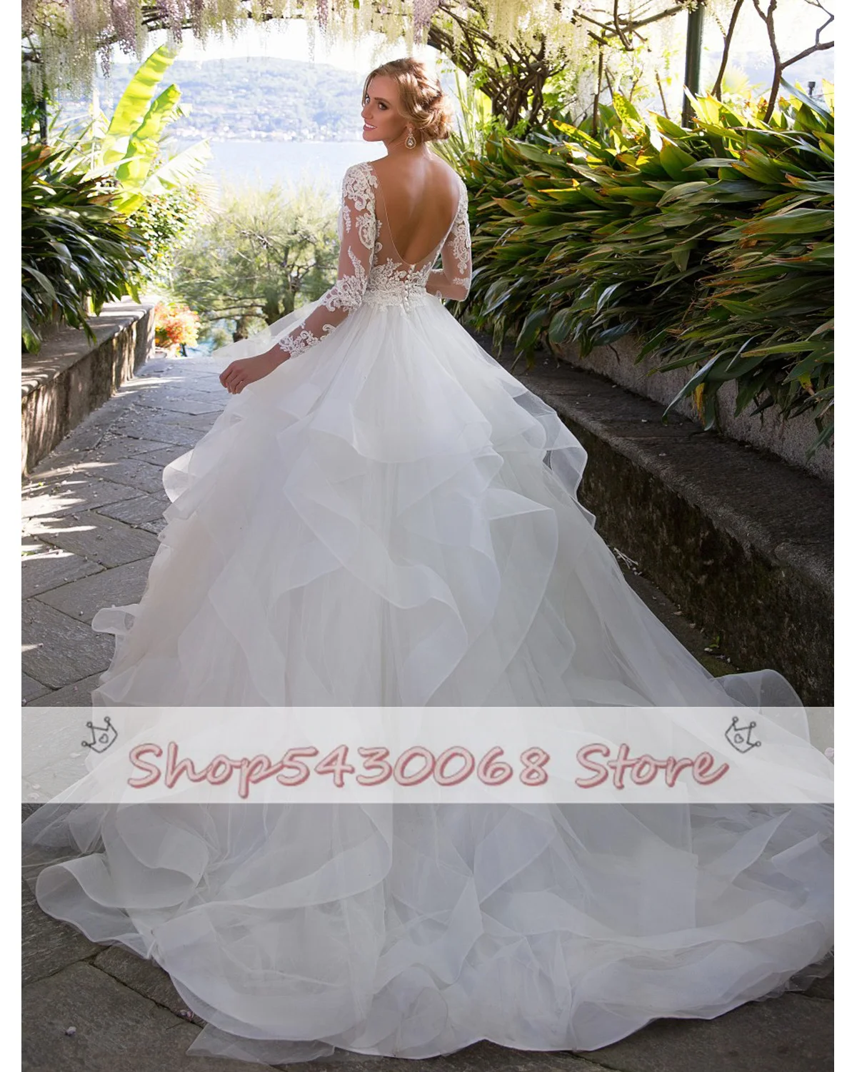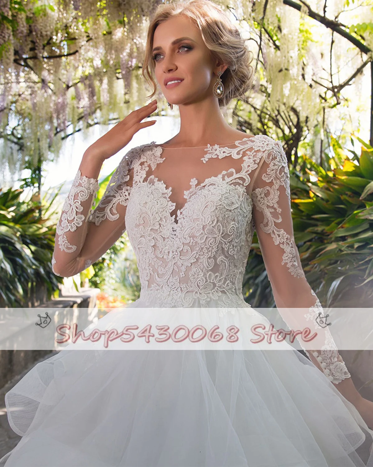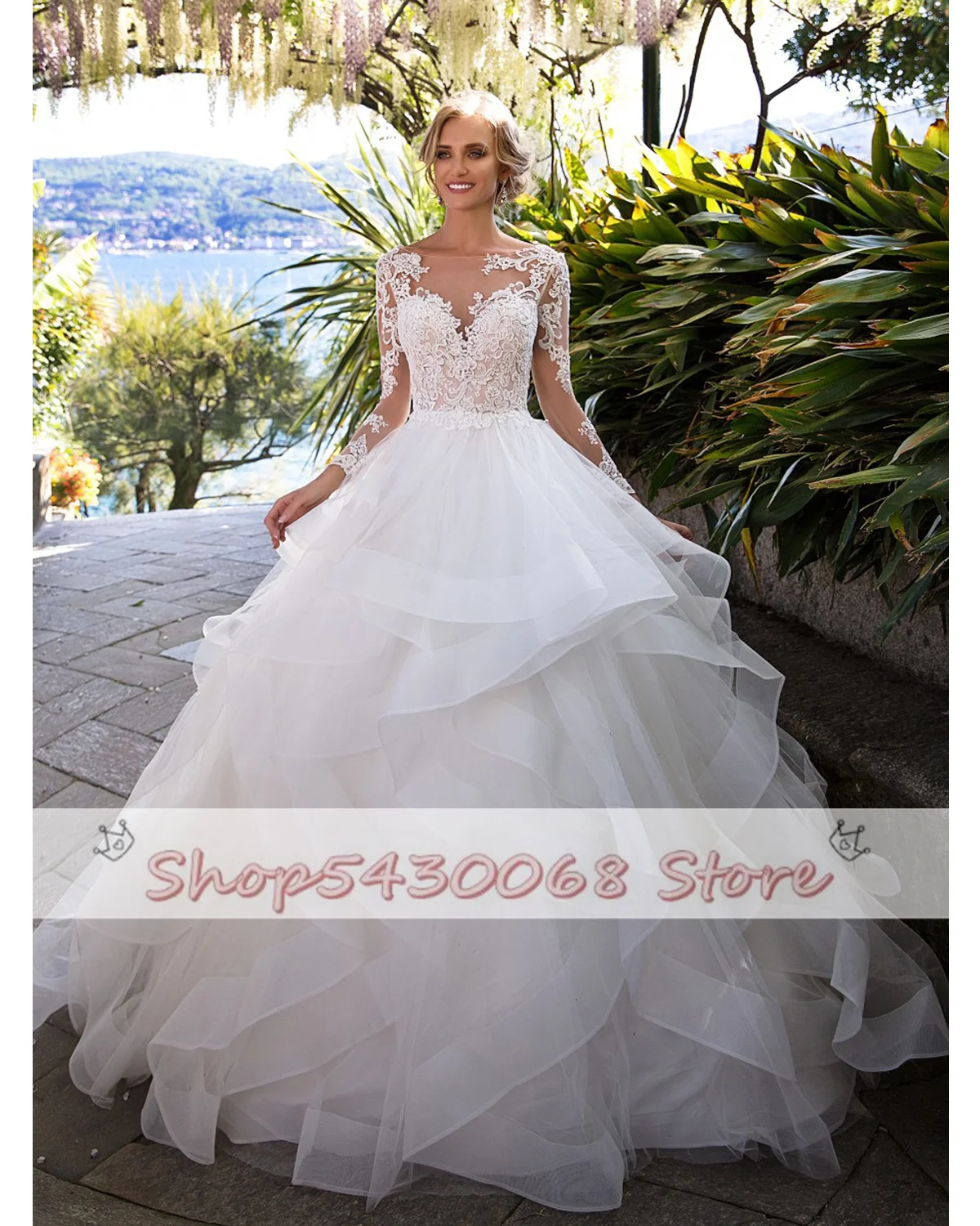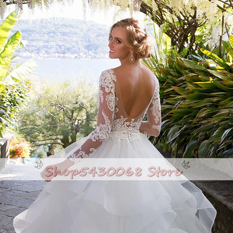 Винтажное бальное платье, свадебные платья принцессы 2021, женское кружевное Тюлевое Многоярусное платье с длинным рукавом, свадебные платья