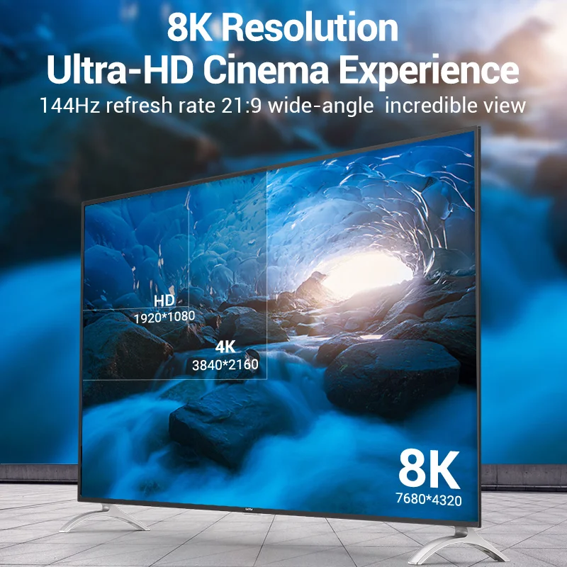 Кабель HDMI 2,1 Vention, 4K, 8K, штекер-штекер, для коммутатора, разветвителя ТВ, PS34 Smart Box, проектора, высокоскоростной кабель HDMI 8k