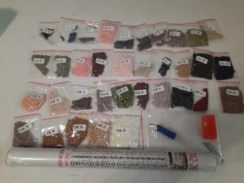 Красивая картина. Реальный размер 29х39 см. Всех страз хватило, думаю еще на одну хватило бы. Липкий слой крепкий, держит отлично. Доставка до пункта выдачи две недели. При доставке ничего не помялось, не потерялось. Продавца рекомендую.