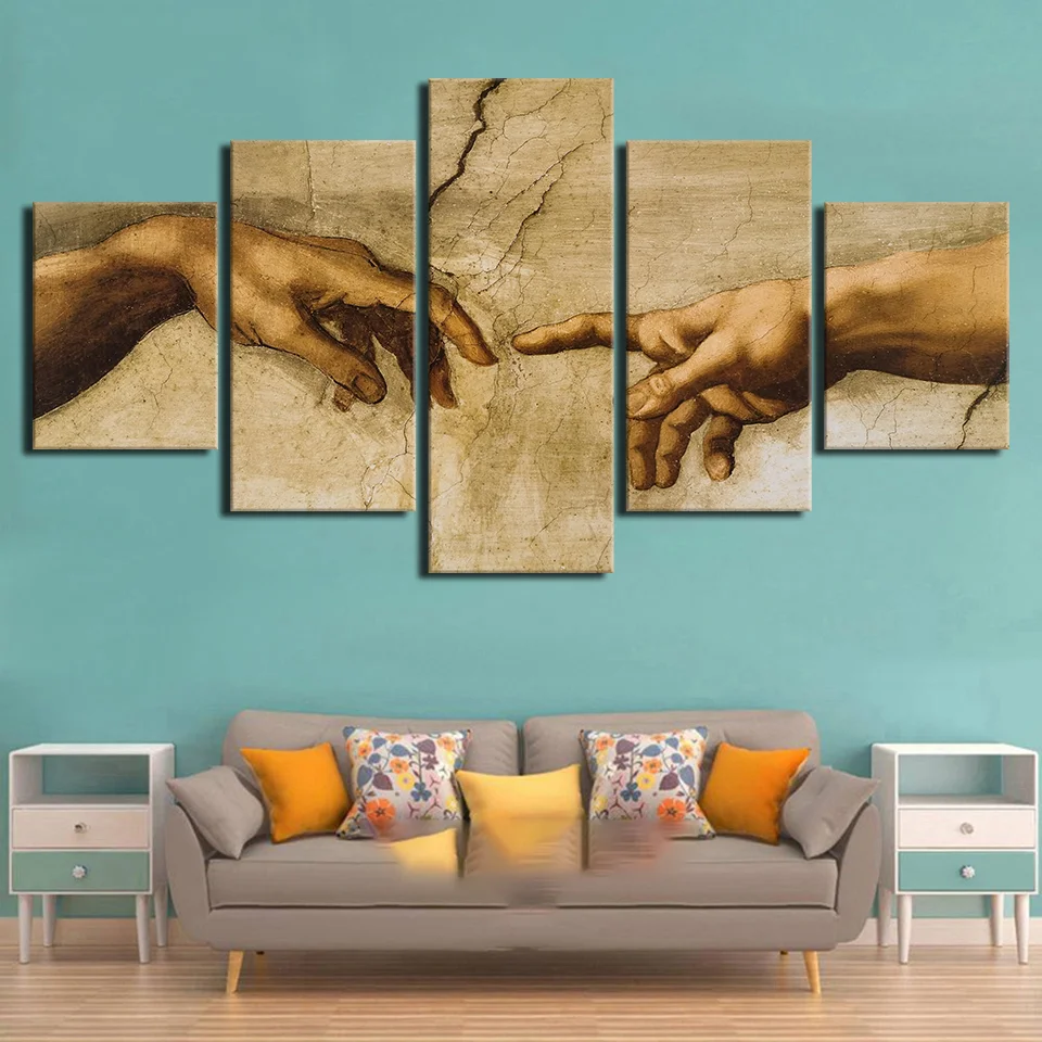 Модульные картины, 5 шт., HD, творение Адама, рука Божья, холст, постер, Настенная художественная рамка, картины для дома, современные декоративные