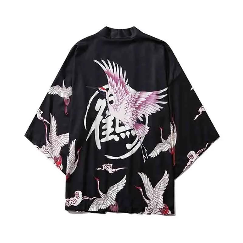 Кимоно Bebovizi мужское с принтом журавлей, уличная одежда в японск...