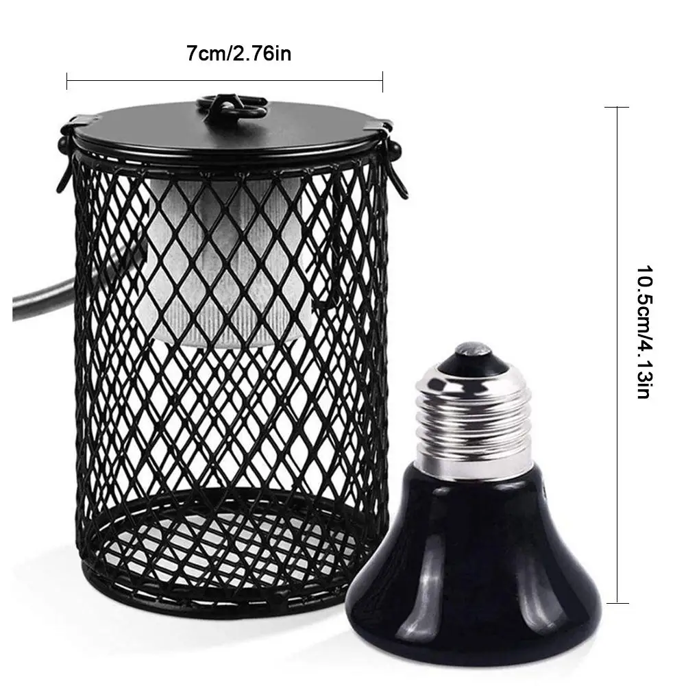 Лампа с подогревом для домашних животных, керамическая нагревательная лампа с защитой от ожогов, в комплекте с защитной клеткой, нагревательная лампа, товары для домашних животных, цыплята лампа для рептилий