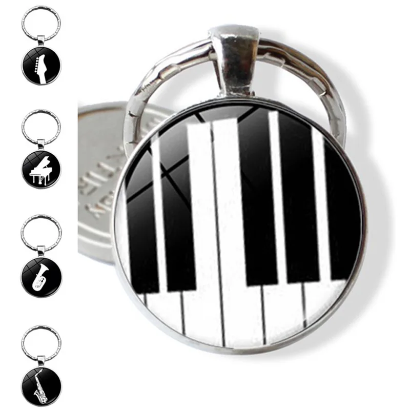 Рояль клавиатура брелок Подвеска музыкальный инструмент гитара саксафон металлический брелок кольца брелок Рождественский подарок