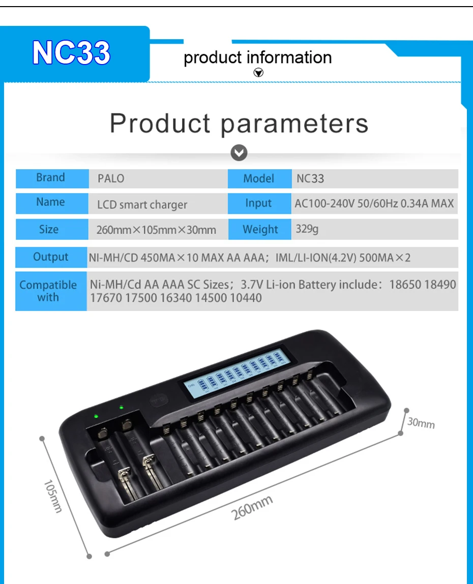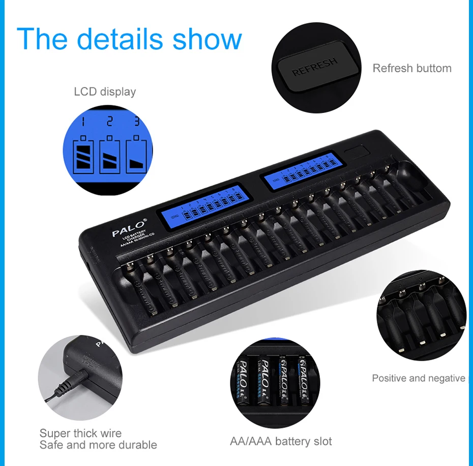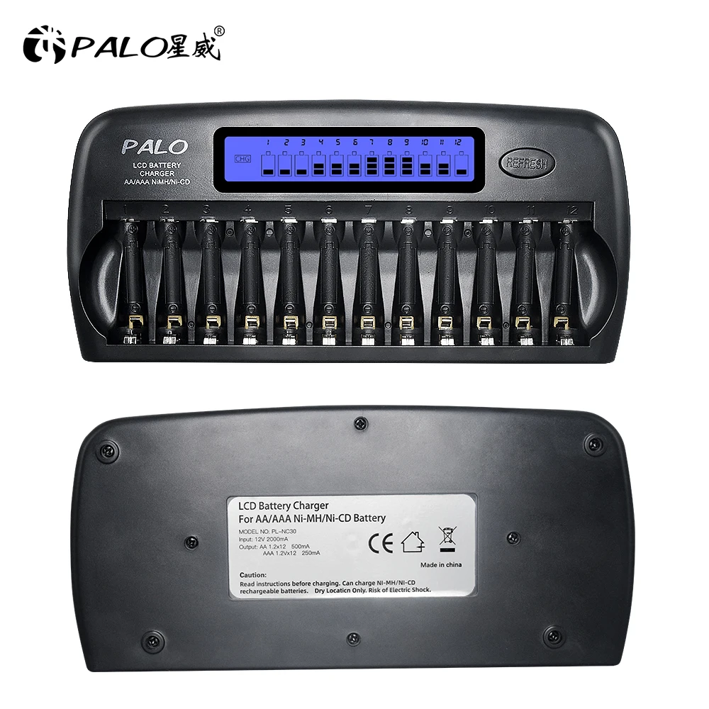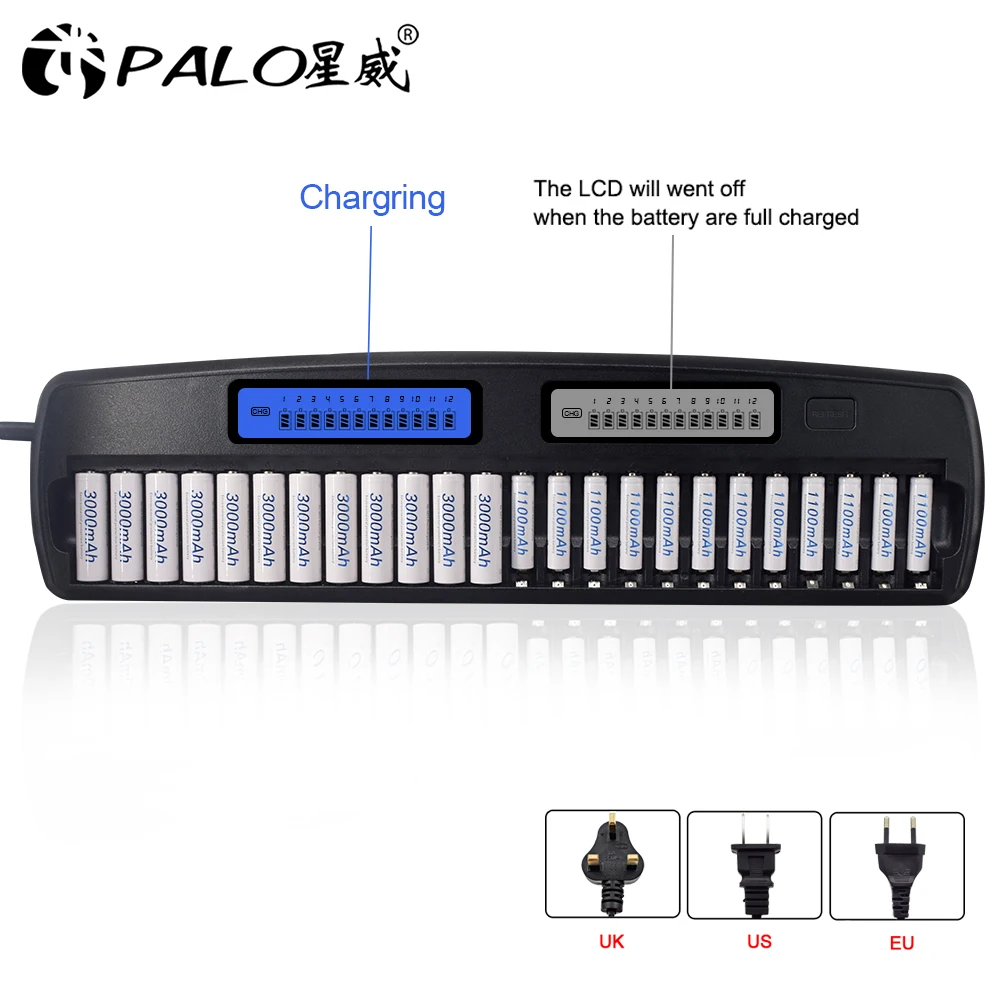 Умное зарядное устройство Palo, 12, 14, 16, 24, 48слотов, быстрая зарядка для никель-металлогидридных, никель-кадмиевых аккумуляторов 1,2В, AA, AAA