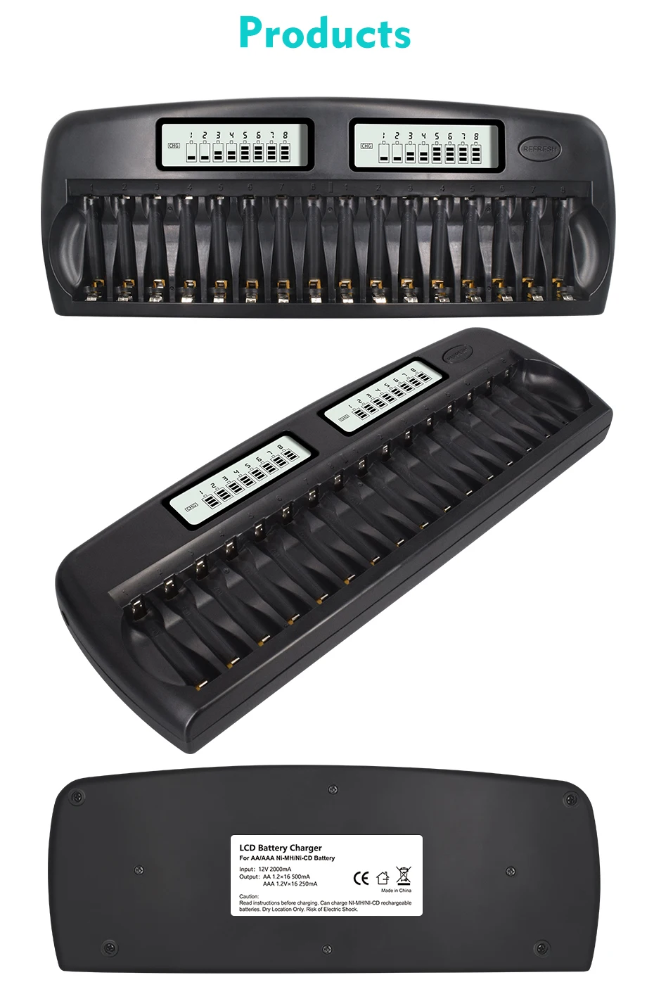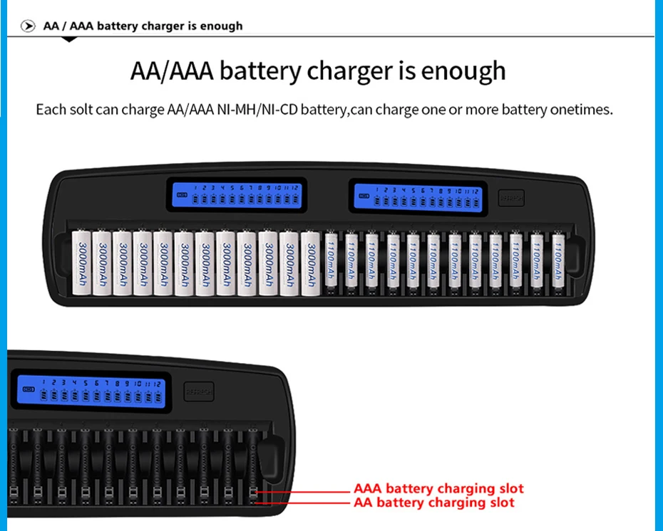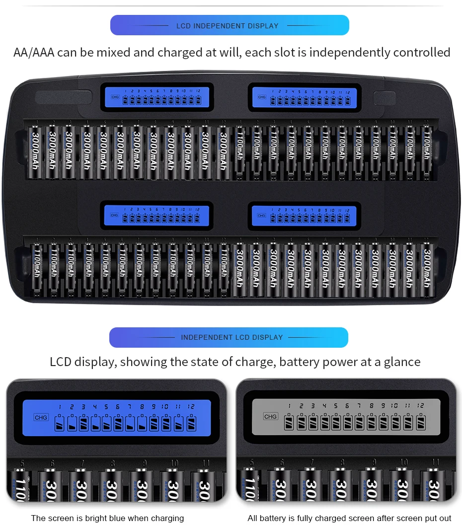 Умное зарядное устройство Palo, 12, 14, 16, 24, 48слотов, быстрая зарядка для никель-металлогидридных, никель-кадмиевых аккумуляторов 1,2В, AA, AAA