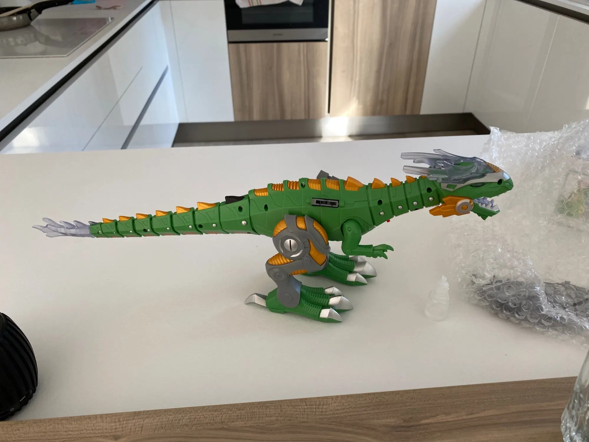 Нет винтов для обеспечения доступа к батареям. Кроме того, если вы хотите модель с шеей и суставом, вам придется взять самый дорогой. Логично, но я не понял, вдруг немного разочарован. Также Дракон никогда не останавливается, вы должны положить его на выключение для этого. Так что следите за ушами родителей ..