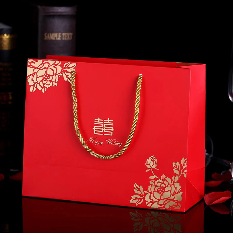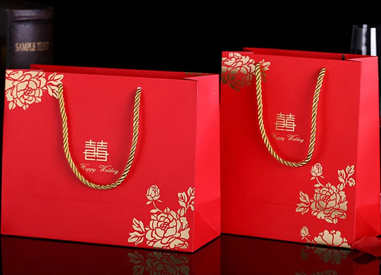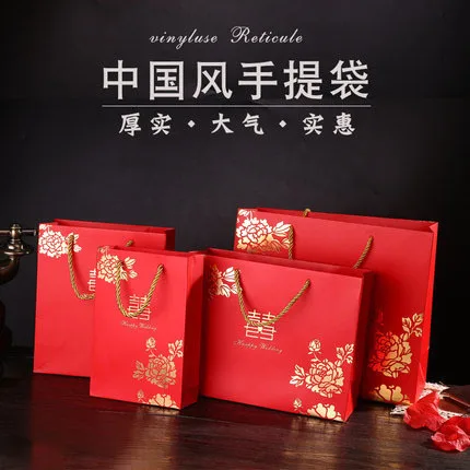Китайский стиль Свадебная вечеринка Сувениры для гостей коробка конфет Подарочная коробка Упаковка Свадебный бумажный подарочный пакет с ручками cajas de carton