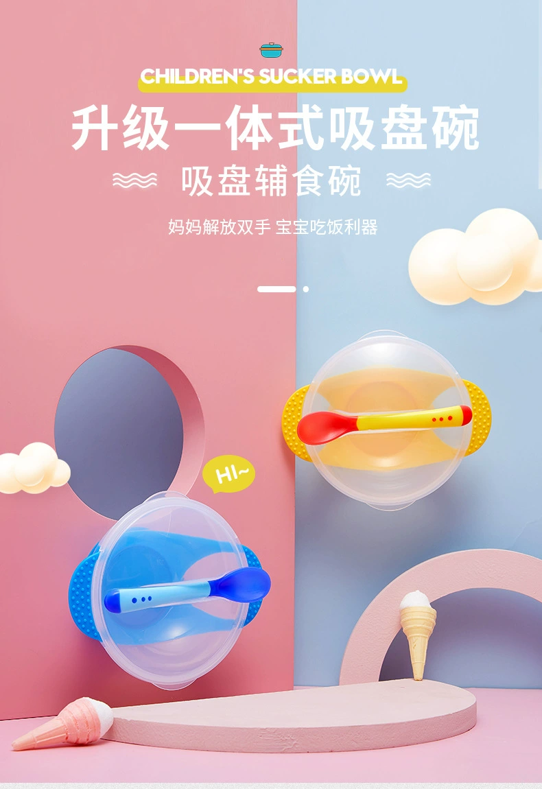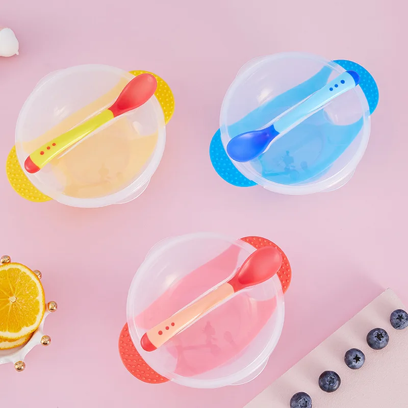 Детская миска для еды, обучающая посуда, чувствительная ложка для кормления, тарелкаподнос, набор детской посуды на присоске