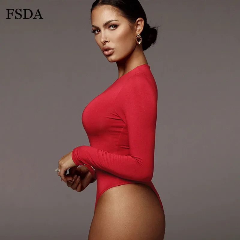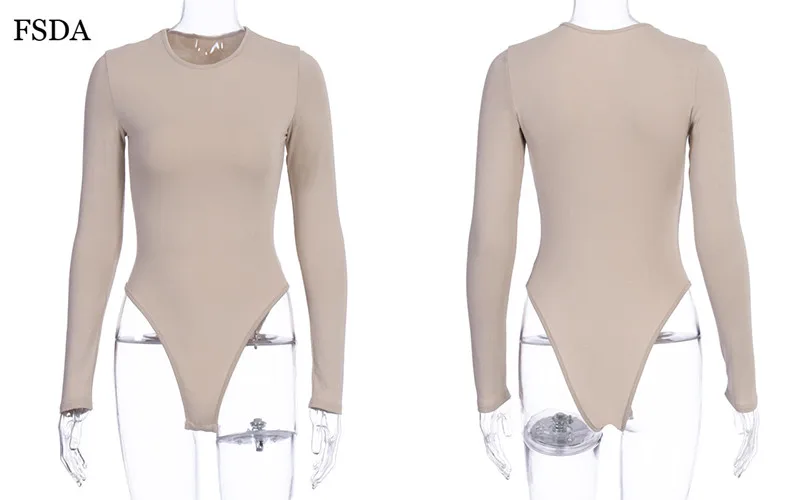 Боди женское однотонное с круглым вырезом и длинным рукавом