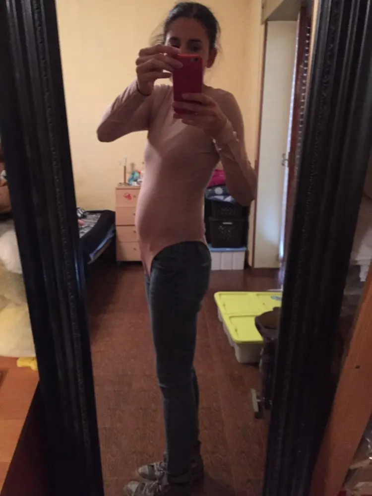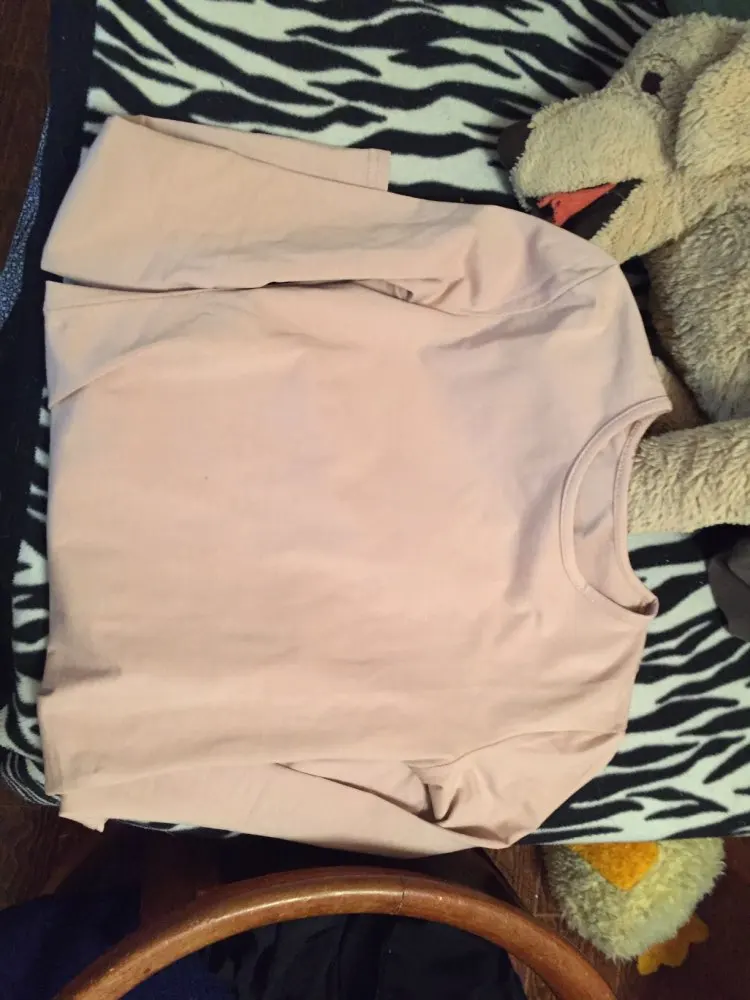 Безумно красивый цвет, пудровый. Ткань очень мягкая и приятная к телу, по размеру все отлично, даже на моё пузико 7 месяцев отлично, нигде не давит и не трёт. Буду заказывать ещё другой цвет обязательно! На рост 172 - м идеально, и по рукавам тоже отлично.