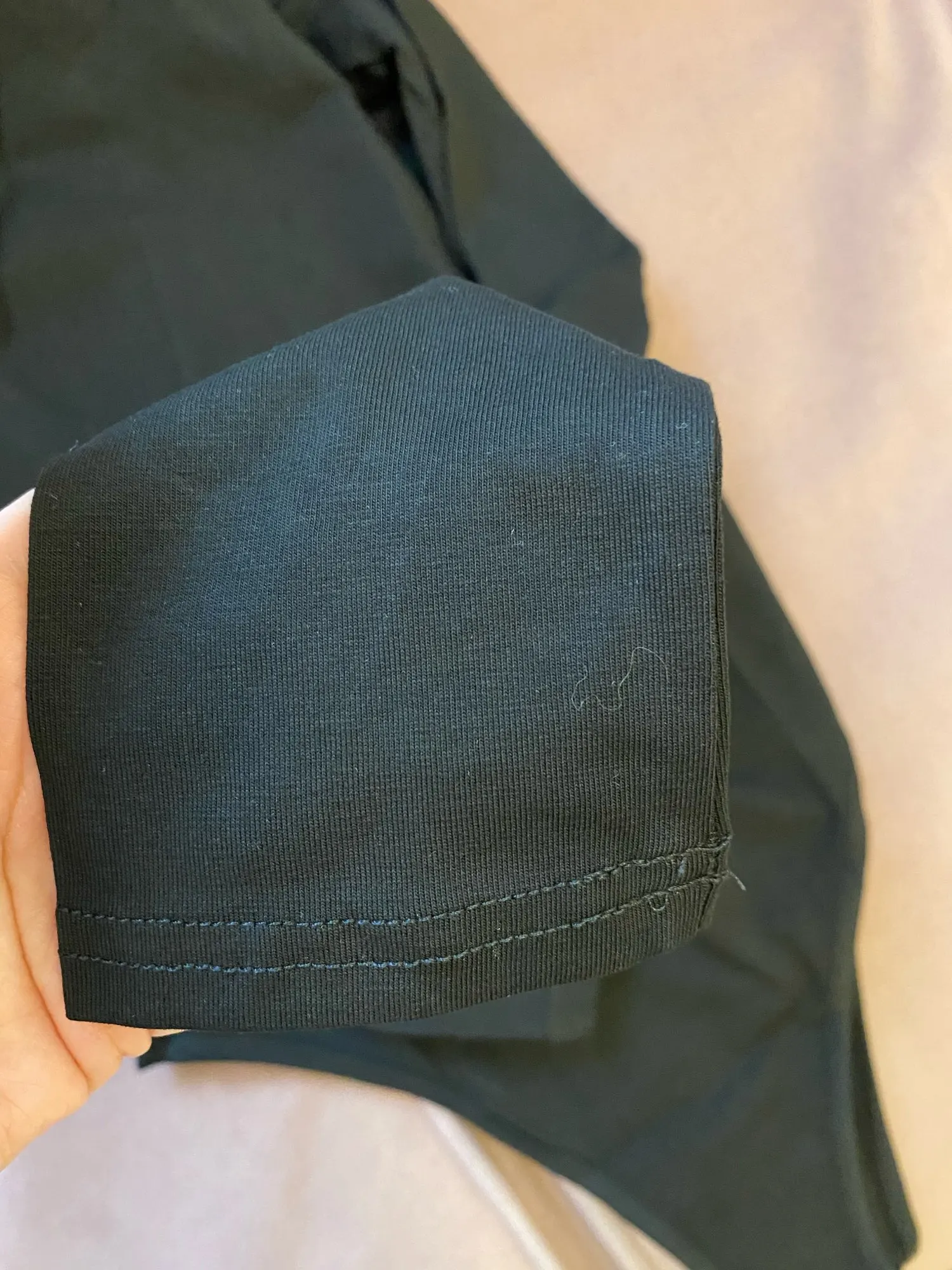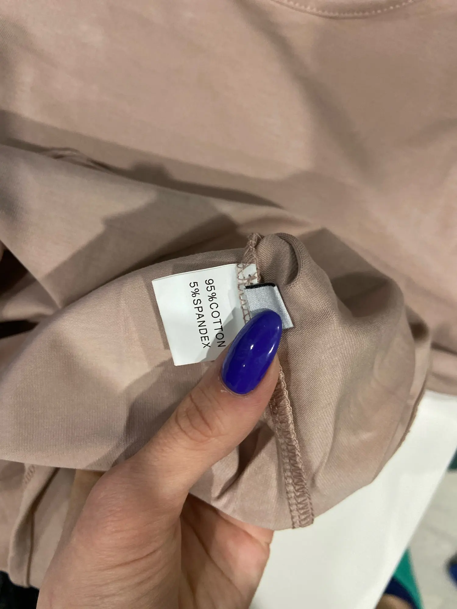 Отличная базовая вещица, на российский размер S (42-44), изучив отзывы, взяла М, правильно сделала, село идеально. Швы ровные, нитки не торчат, цвет приятный, приглушённый. В Москву пришло за 2 недели, огромное спасибо магазину, покупкой очень довольна.
