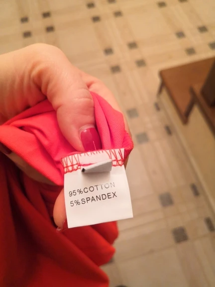 Изделие аккуратное, хлопок, приятно к телу. Размер L хорошо подойдёт на русский 46, мне сильно обтягивает. Грудь приплюснуло, хотя у меня размер 80В.