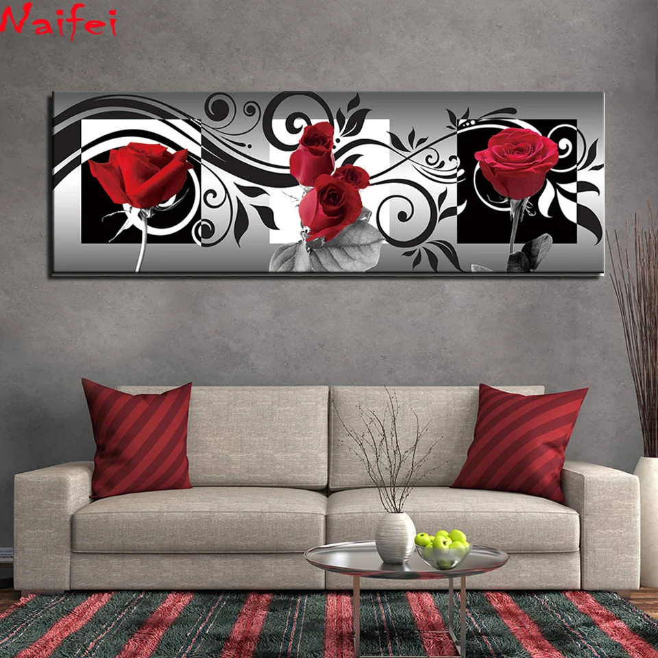Алмазная 5D картина большого размера, круглая мозаика черно-белая, красная роза, полноразмерная вышивка с цветами, ручная работа, подарок