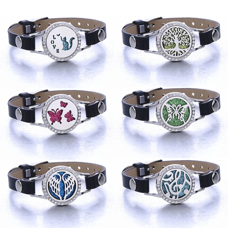 Браслет для ароматерапии натуральная кожа Нержавеющая сталь эфирное масло диффузор медальон браслет браслеты Aroma ювелирные изделия с диффузором