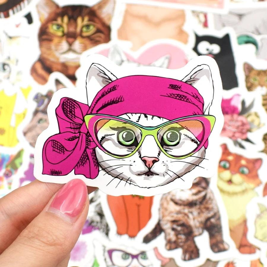 Наклейки с милым мультяшным котом, водонепроницаемая наклейка в виде милых животных, 50 шт., подарок для детей, сделай сам, для чемодана, велосипеда, автомобиля, ноутбука