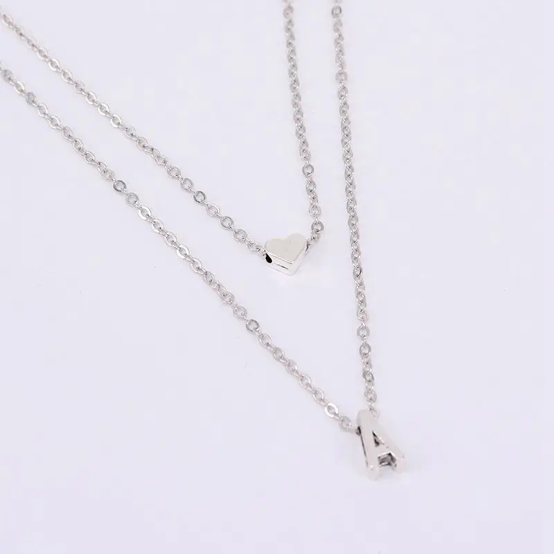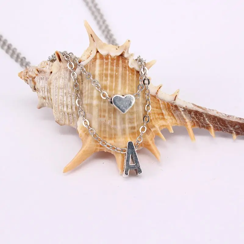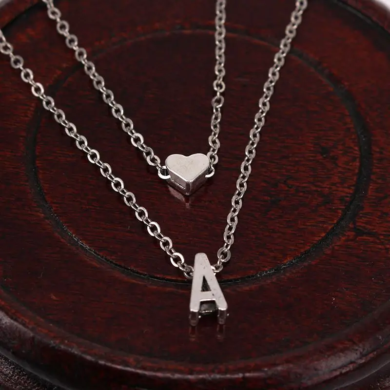 Ожерелье с двухслойной именной табличкой в виде сердца, серебристое, изысканное ожерелье, 26 букв, ювелирные изделия, подарок подруге E002, горячая Распродажа