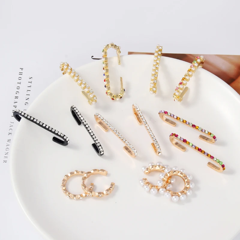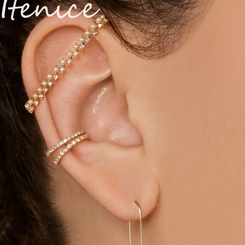 Набор сережек Itenice с фианитами женские, Длинные Клипсы-манжеты золотистого цвета с кристаллами, стразы для ушей, 1 комплект2 шт.