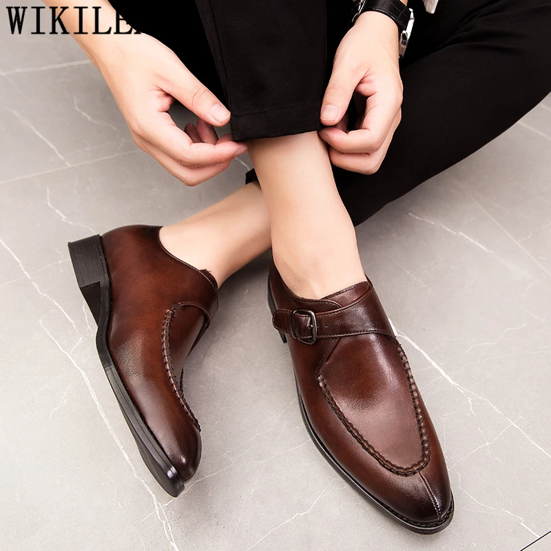Мужские итальянские ботинки с острым носком, элегантные кожаные туфли-оксфорды, модная офисная обувь для мужчин