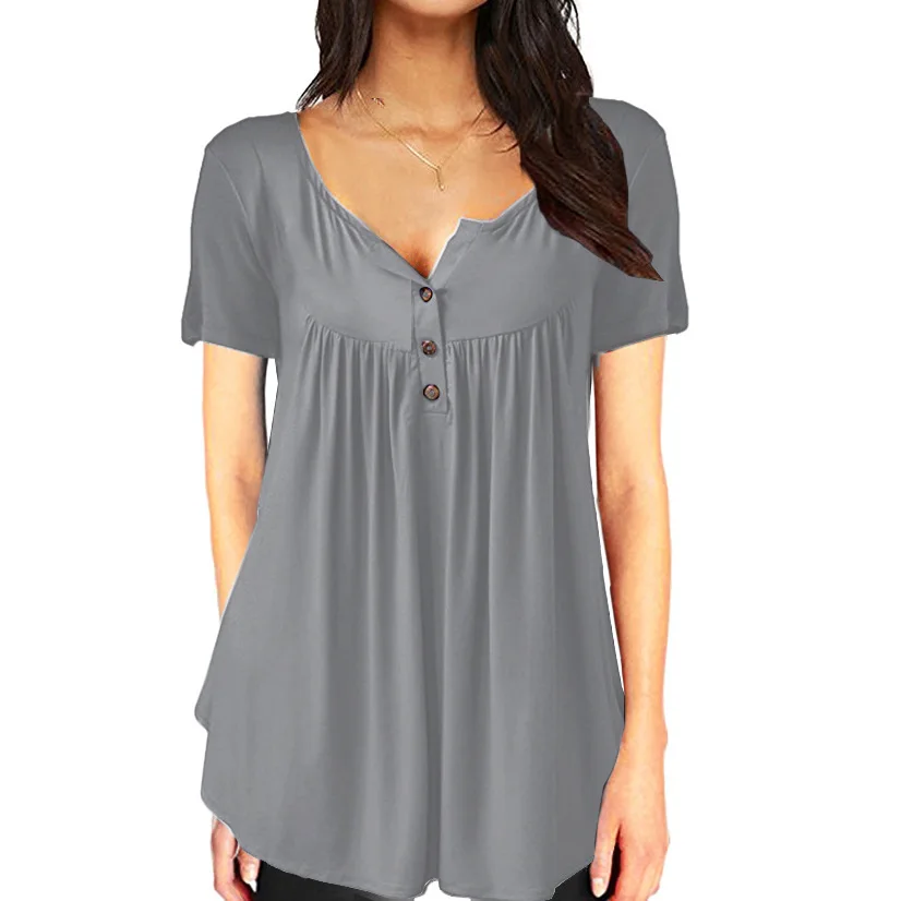 Летняя женская футболка, однотонная, с застежкой, свободная, с коро...