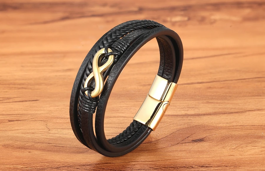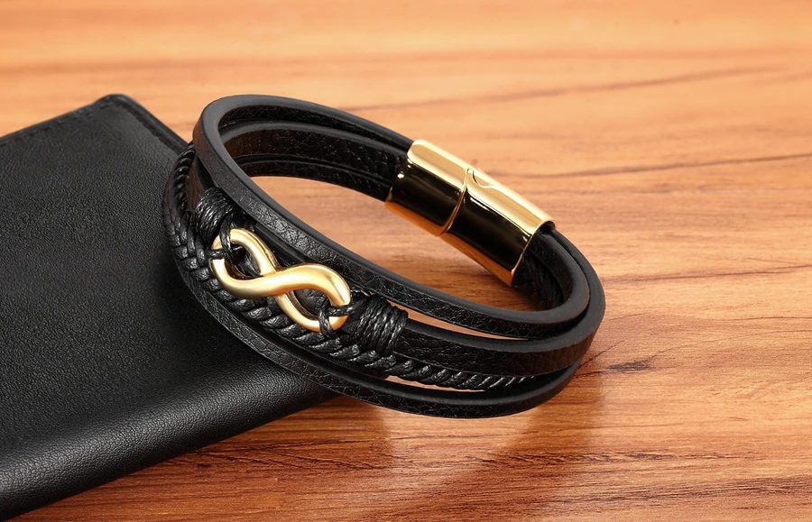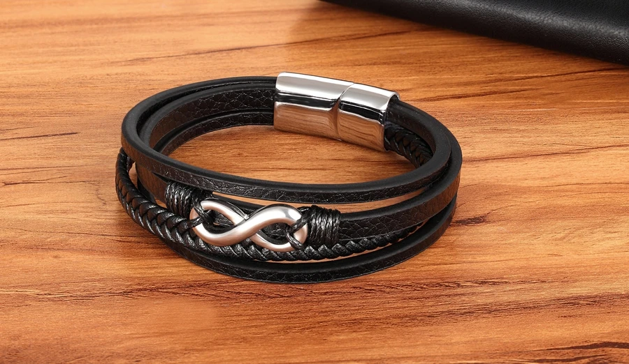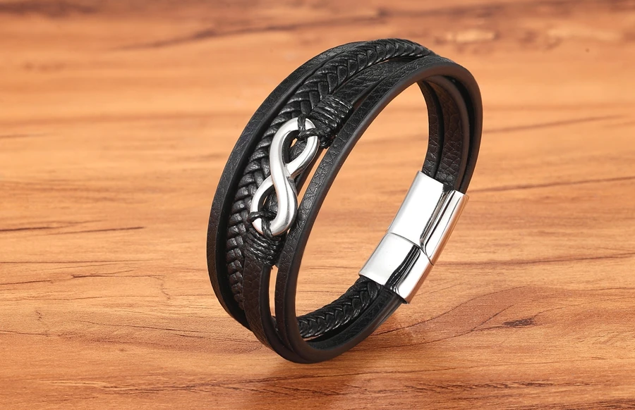 Браслет мужской из нержавеющей стали, многослойный, с геометрическим узором