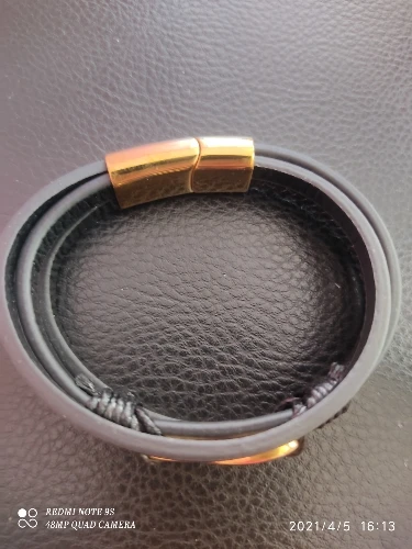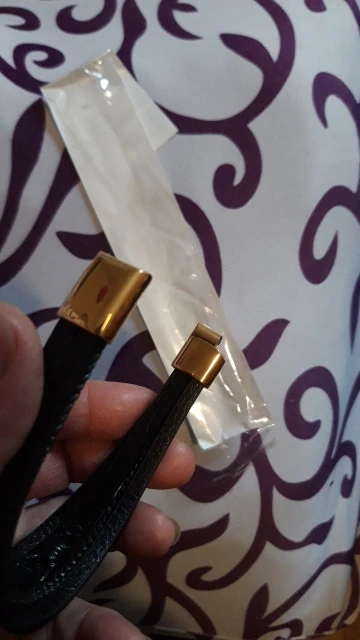 Браслет из кожзама, сделан аккуратно. В фурнитуру вставлены магнитики, сама она пластмассовая, выкрашена под металл.